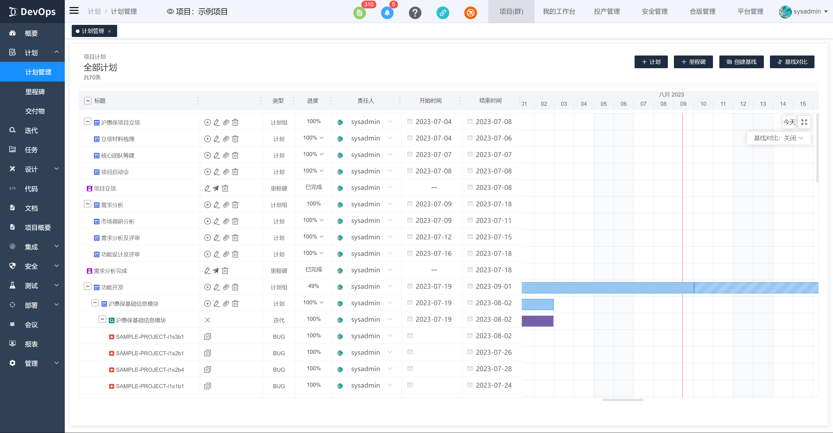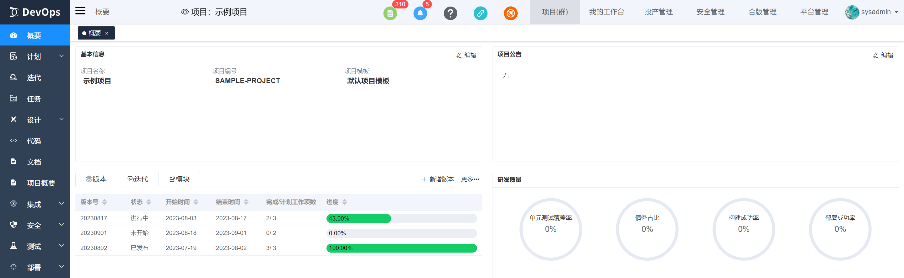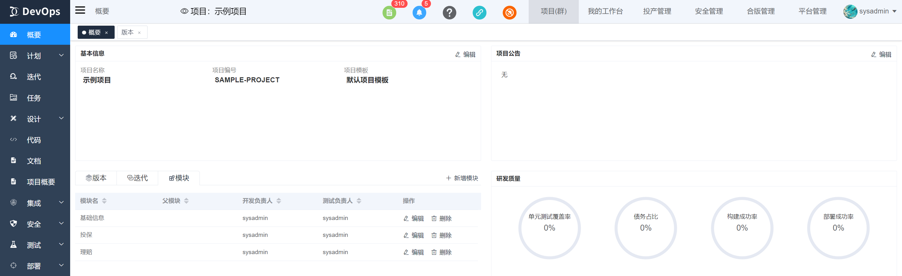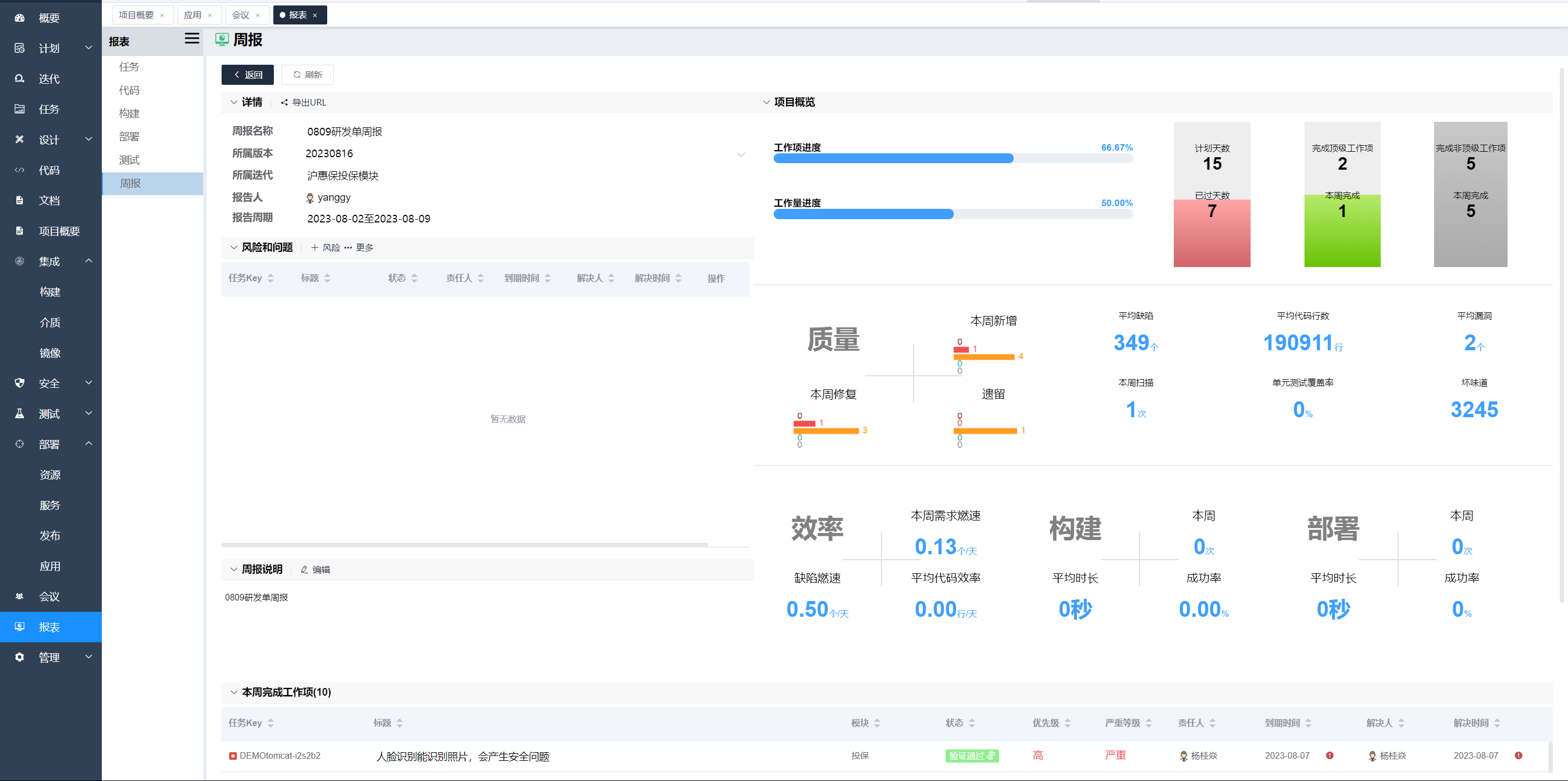 点击确认创建项目后会触发一次异步的该项目的报表统计,统计结束将会产生工作项和代码报表数据。