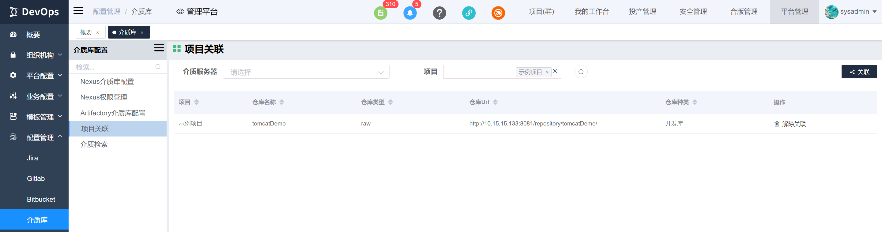 填写了介质库信息后会自动关联介质库到该项目,并且构建定义中发布程序包和数据包会自动发布到该介质库
