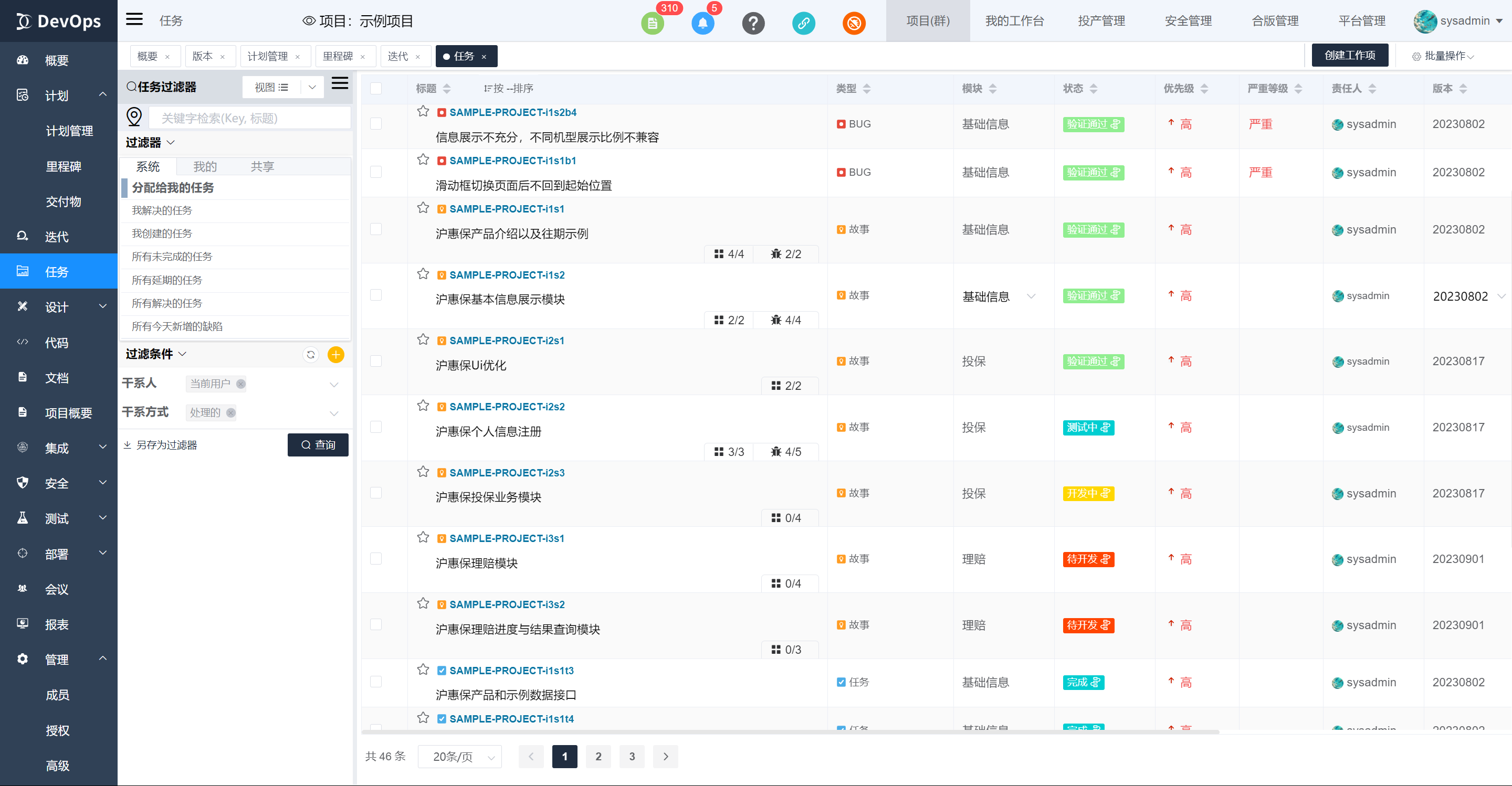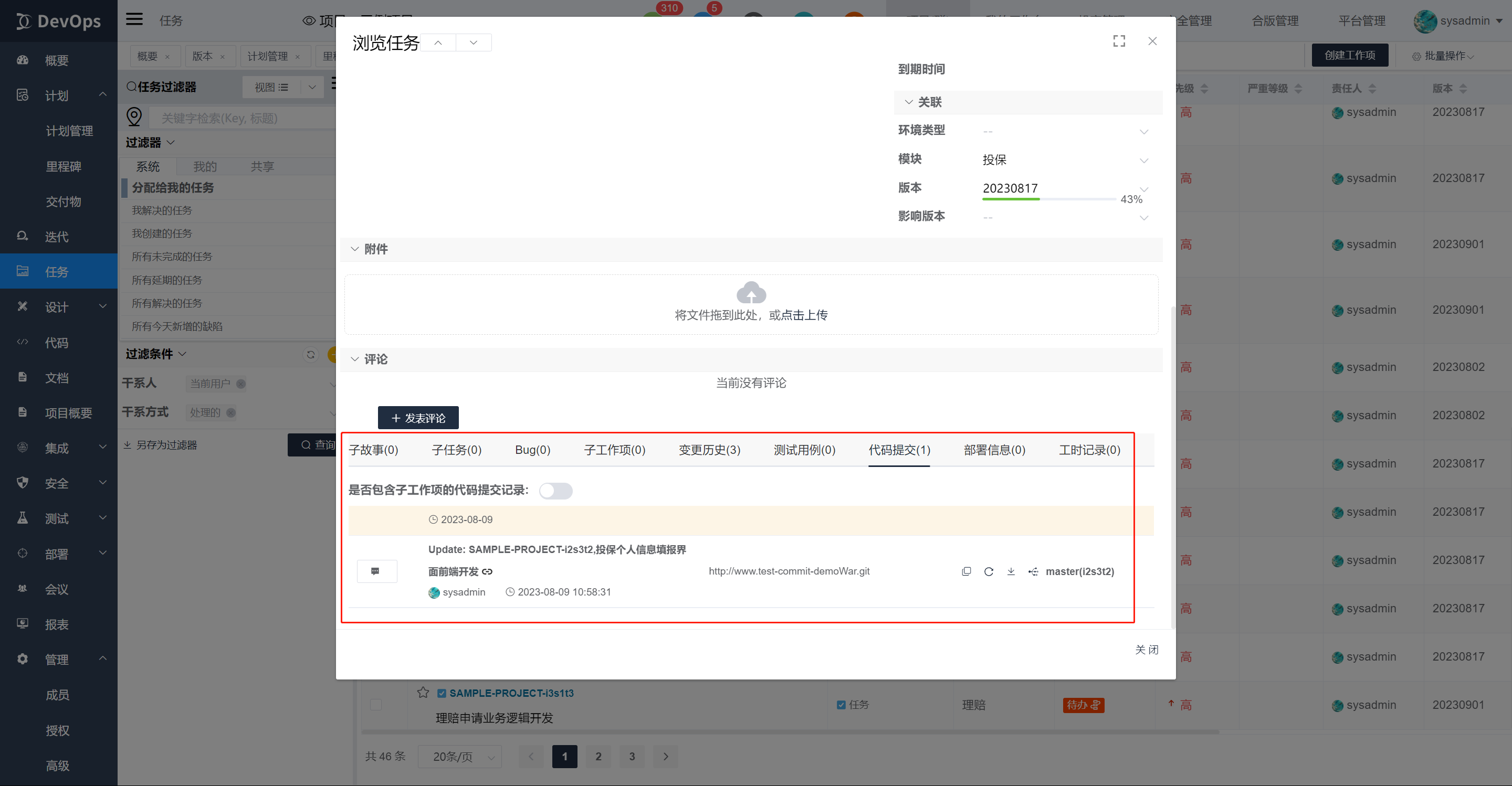 创建故事,任务,缺陷工作项并绑定对应项目版本,项目模块以及项目迭代