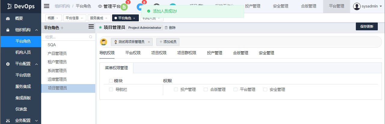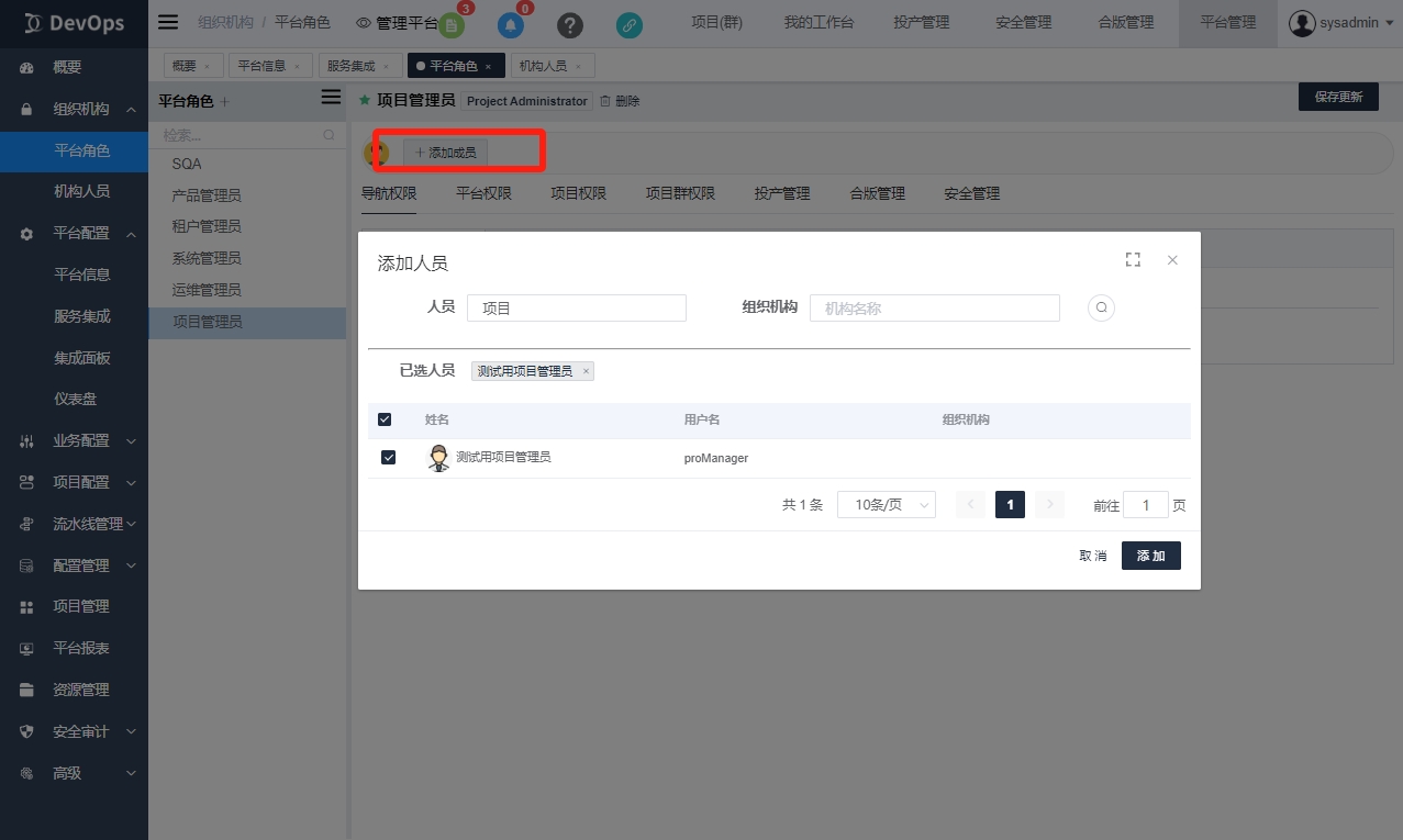 1、选择或新建项目管理员平台角色