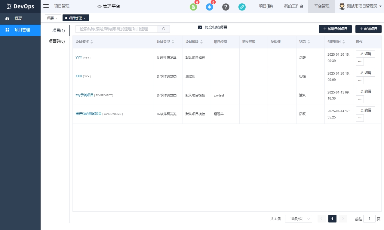 # 平台角色 项目管理员示例