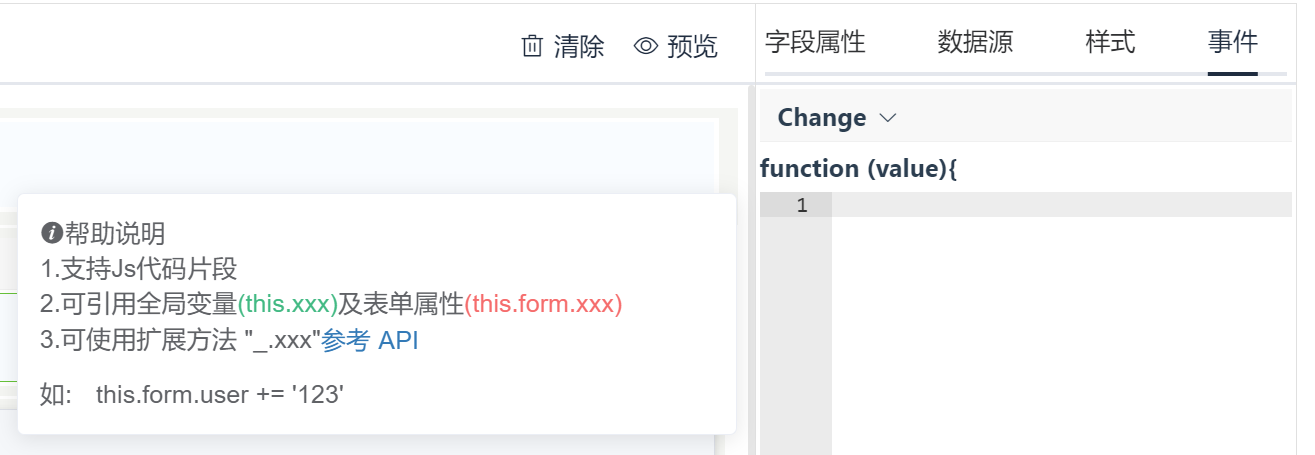 2.可引用全局变量(this.xxx)及表单属性(this.form.xxx)