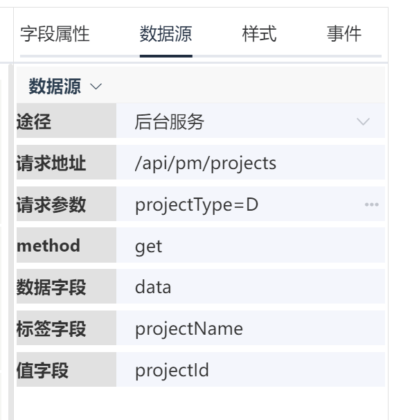 部分控件可以配置数据源,如下拉选择控件