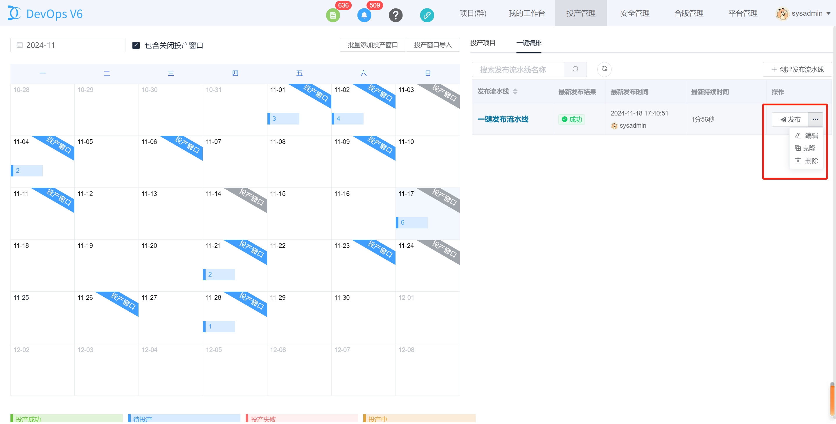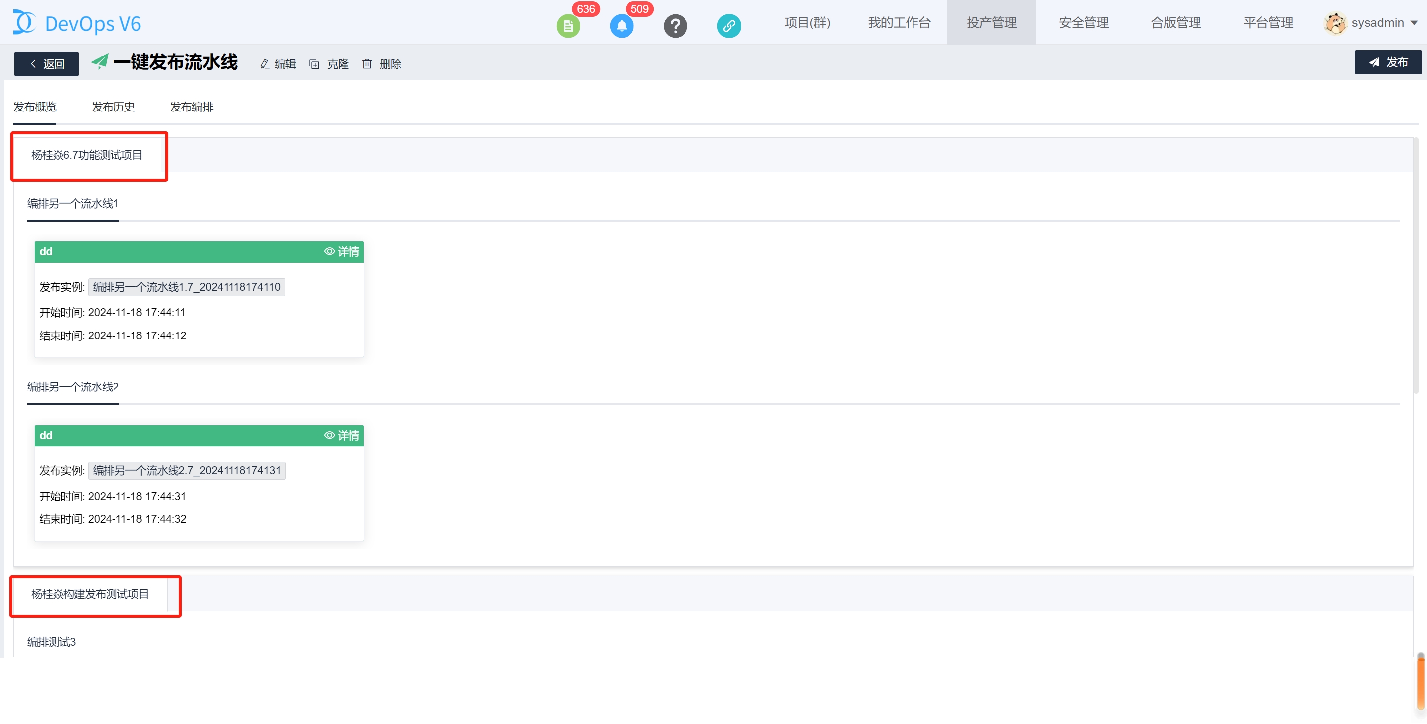发布概览通过投产项目分类,以关联流水线为子类划分。