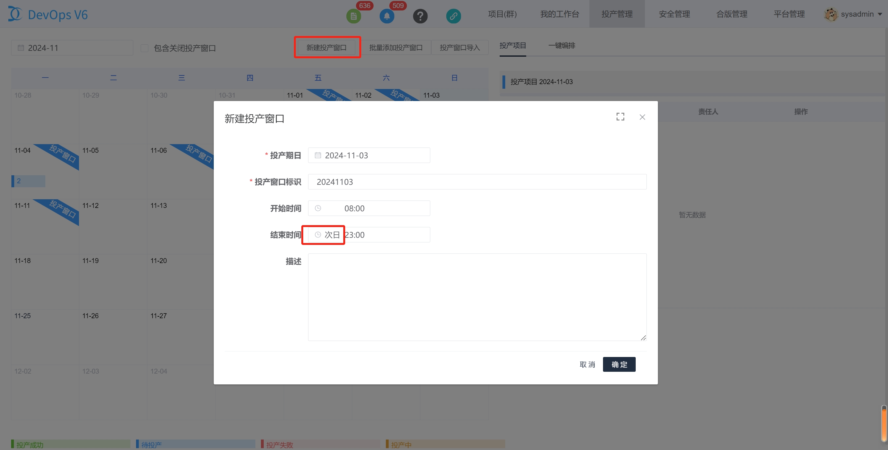 说明:投产窗口标识根据投产日期自动生成,不允许变更;起止时间为投产时间范围标识,无特殊限制作用。