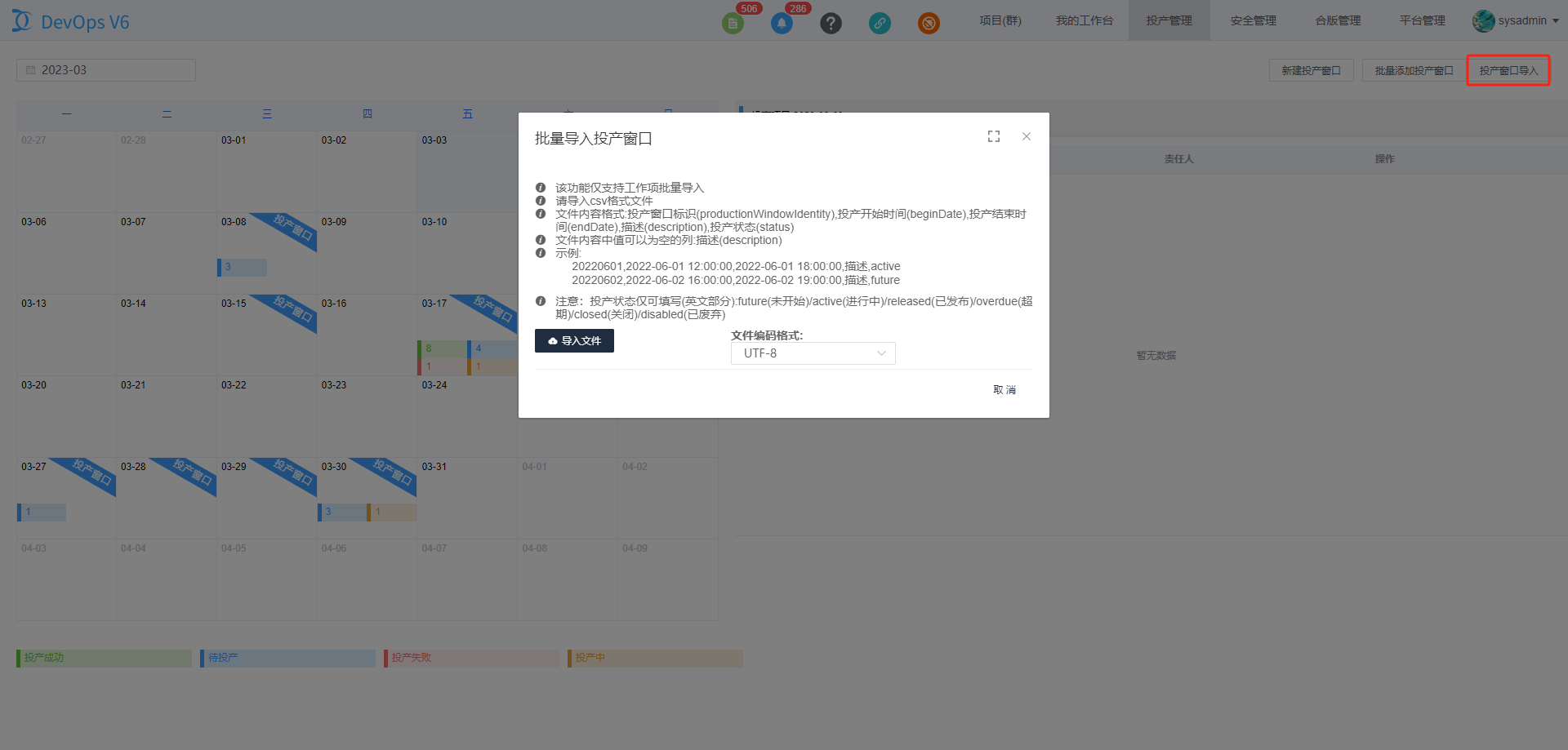 4.点击"投产窗口导入"按钮,通过csv格式文件导入投产窗口。