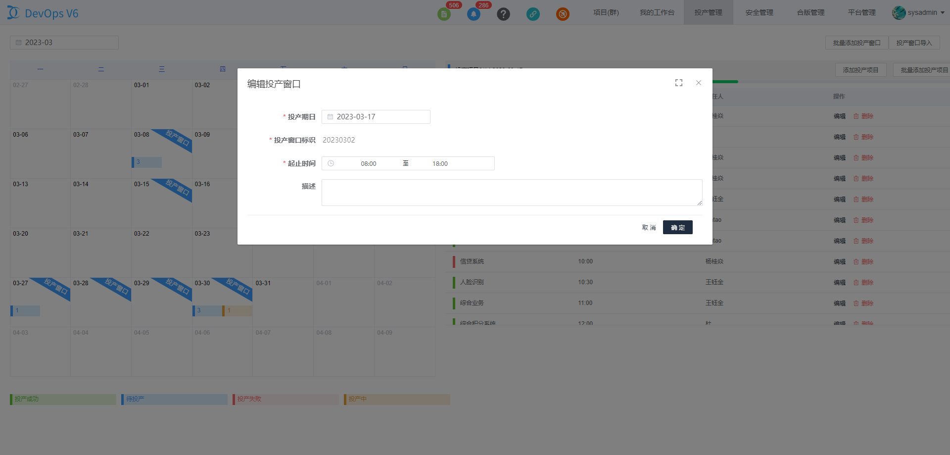 # 投产窗口管理