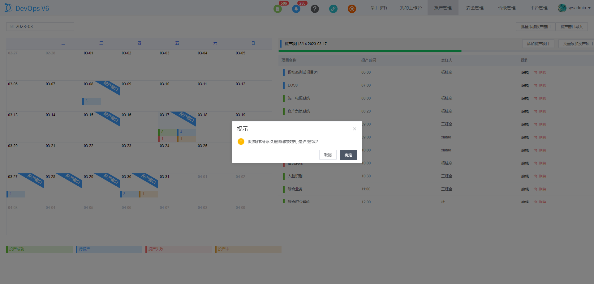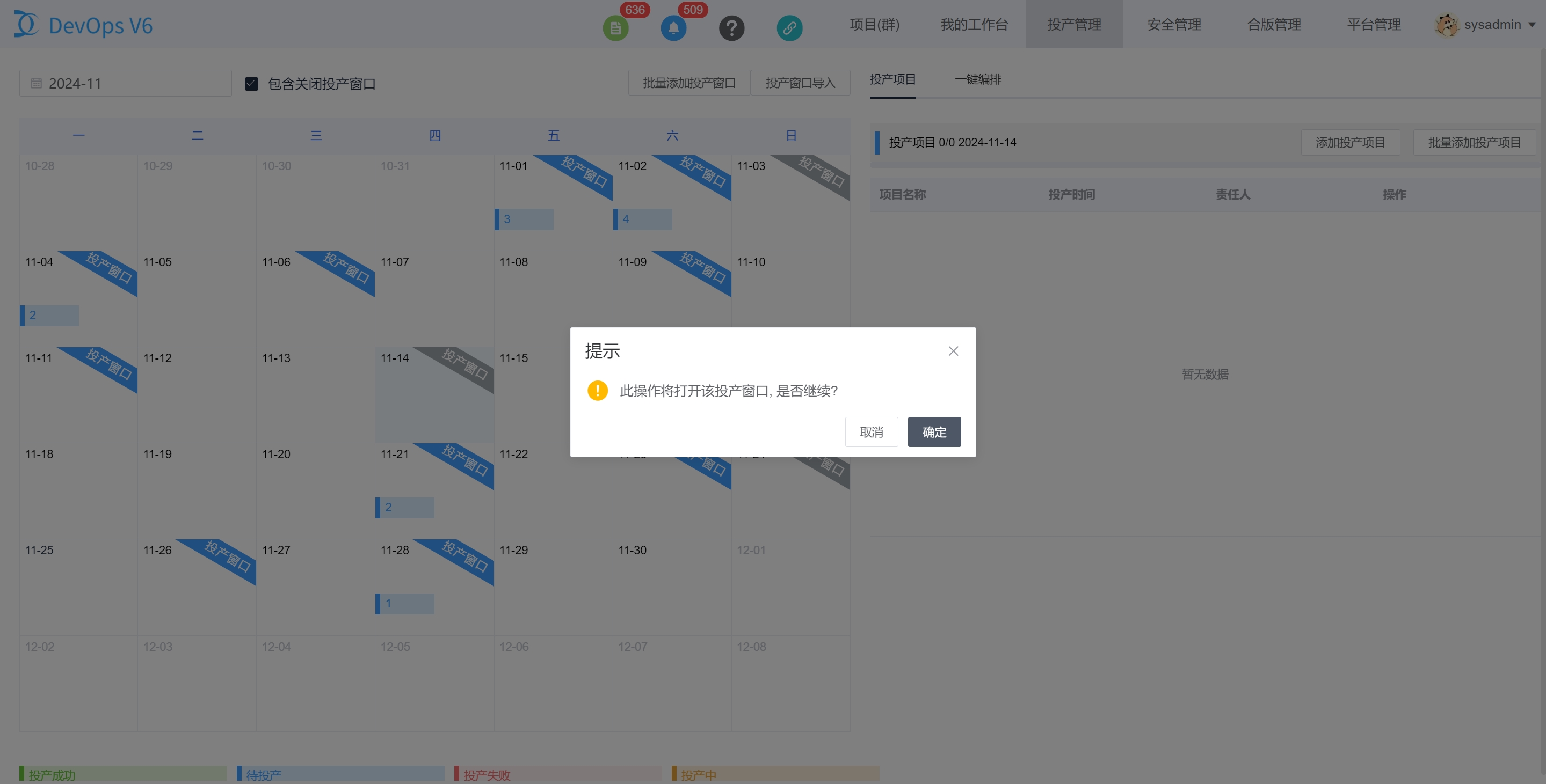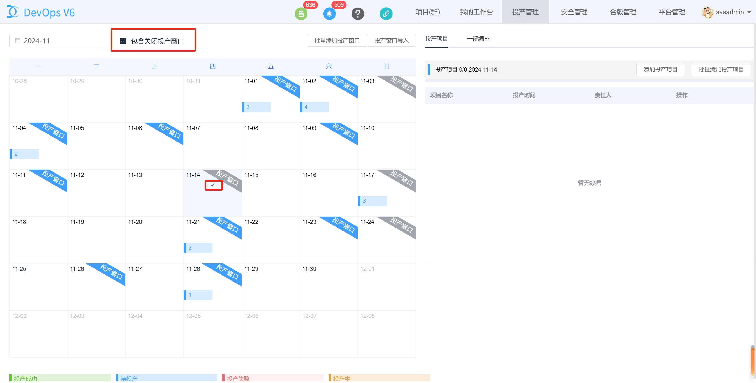 通过DevOps平台上方导航栏的投产窗口进入投产窗口管理页面。