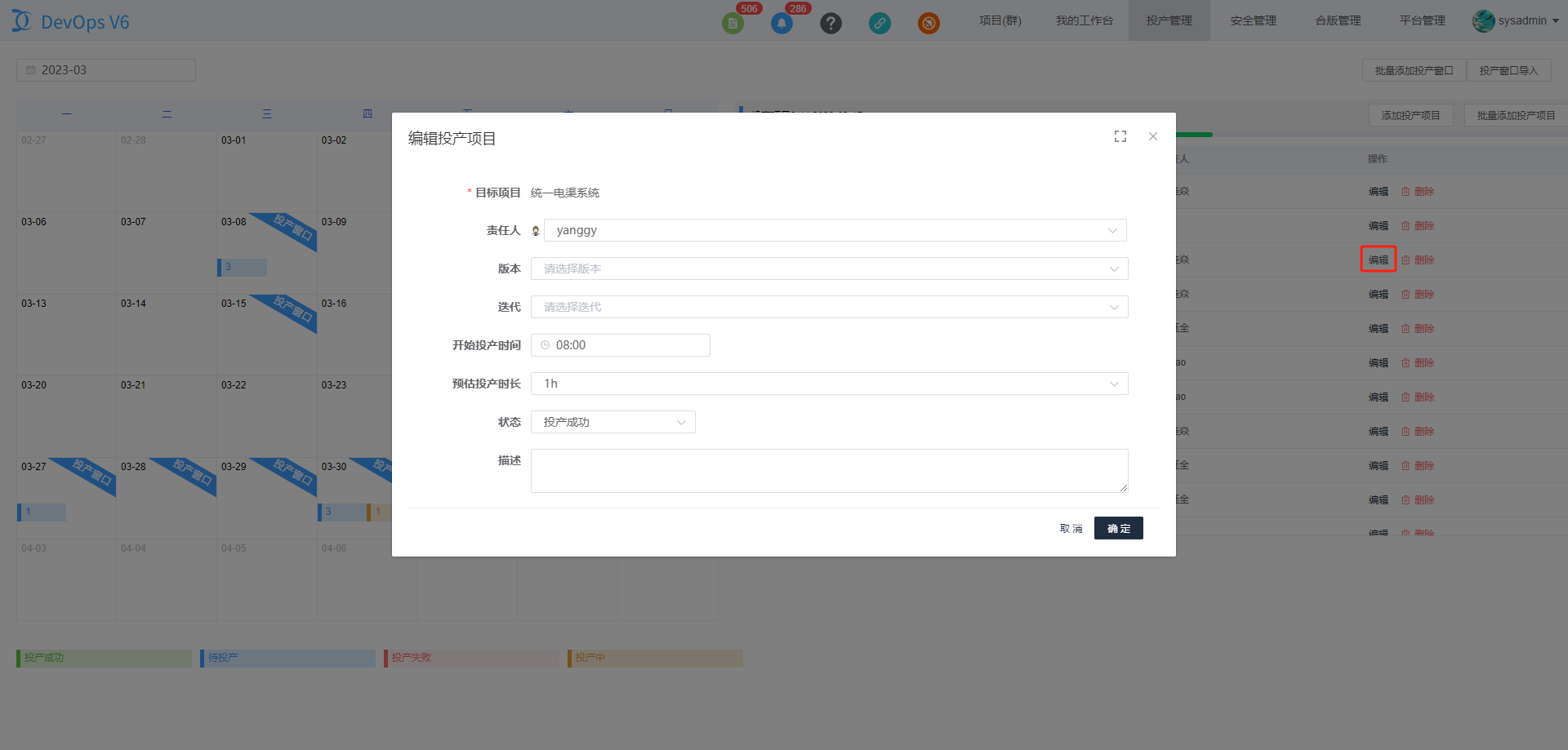 鼠标移至日历中已存在的投产窗口时,可以点击编辑按钮来变更投产窗口信息。