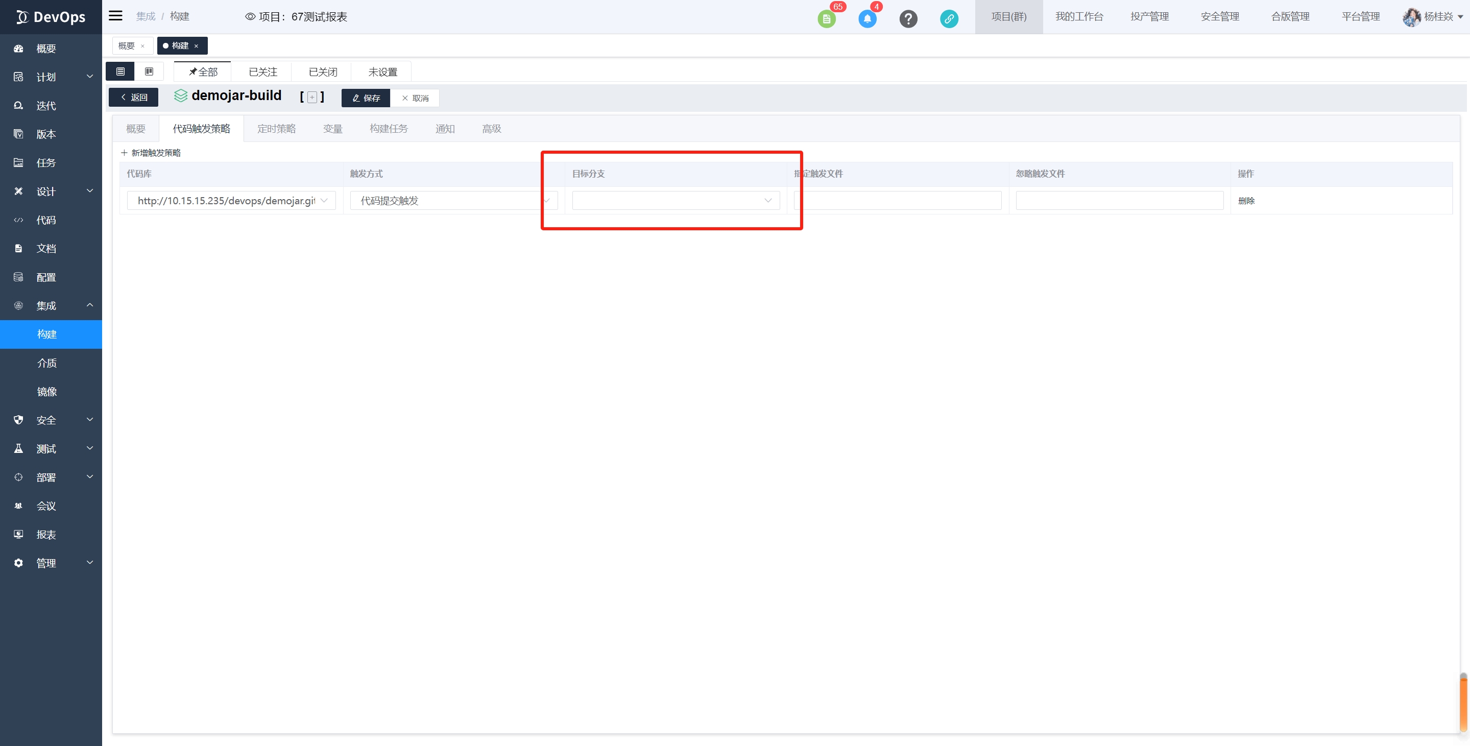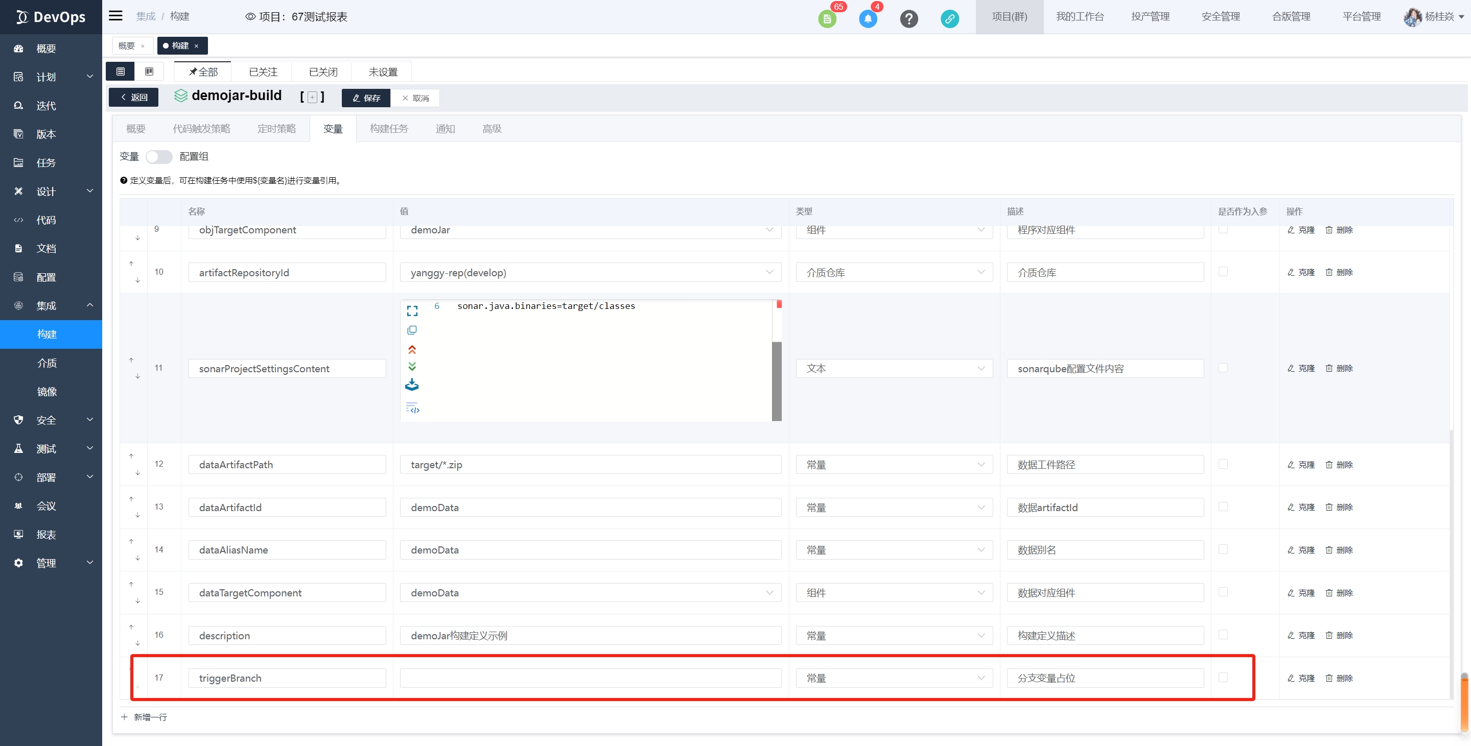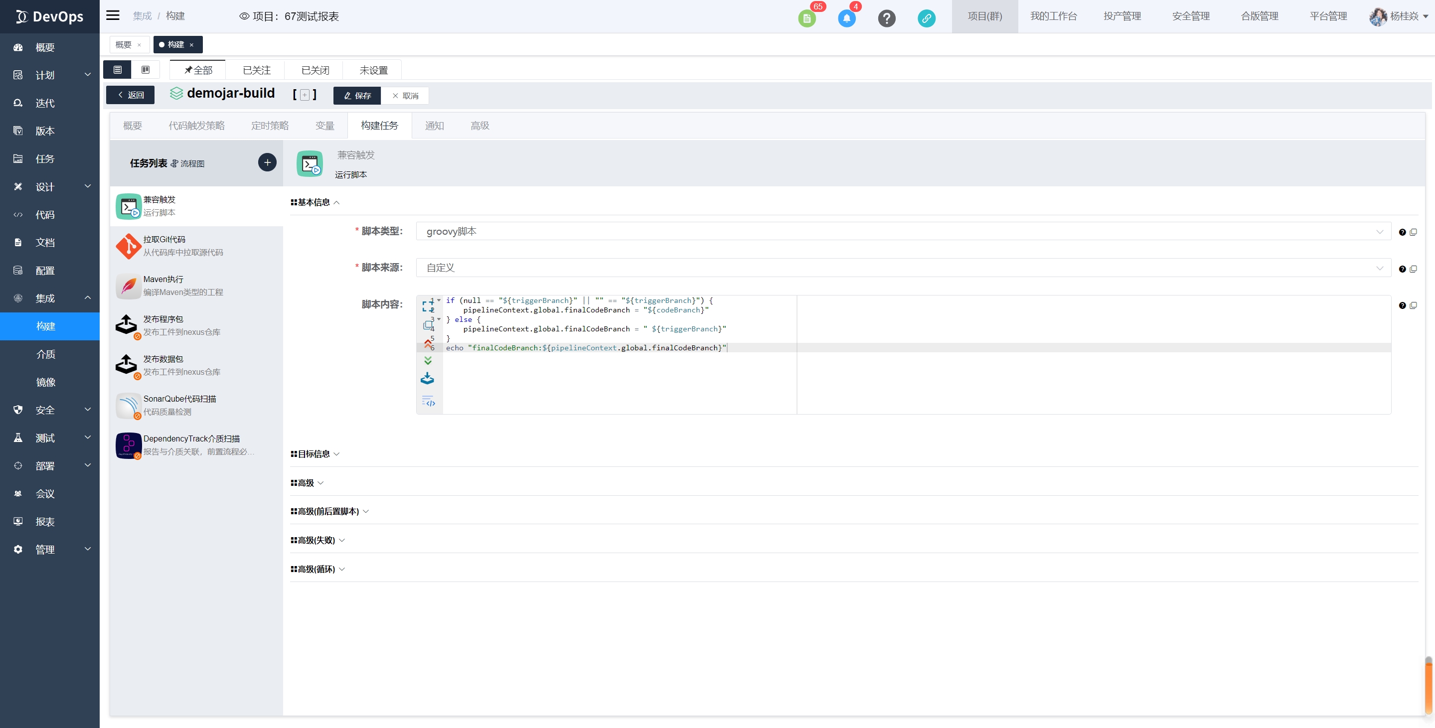 设置triggerBranch变量,代码提交触发回调会生成的对应分支,在这里配置的作用是防止人工触发时,没有初始化该变量导致报错。