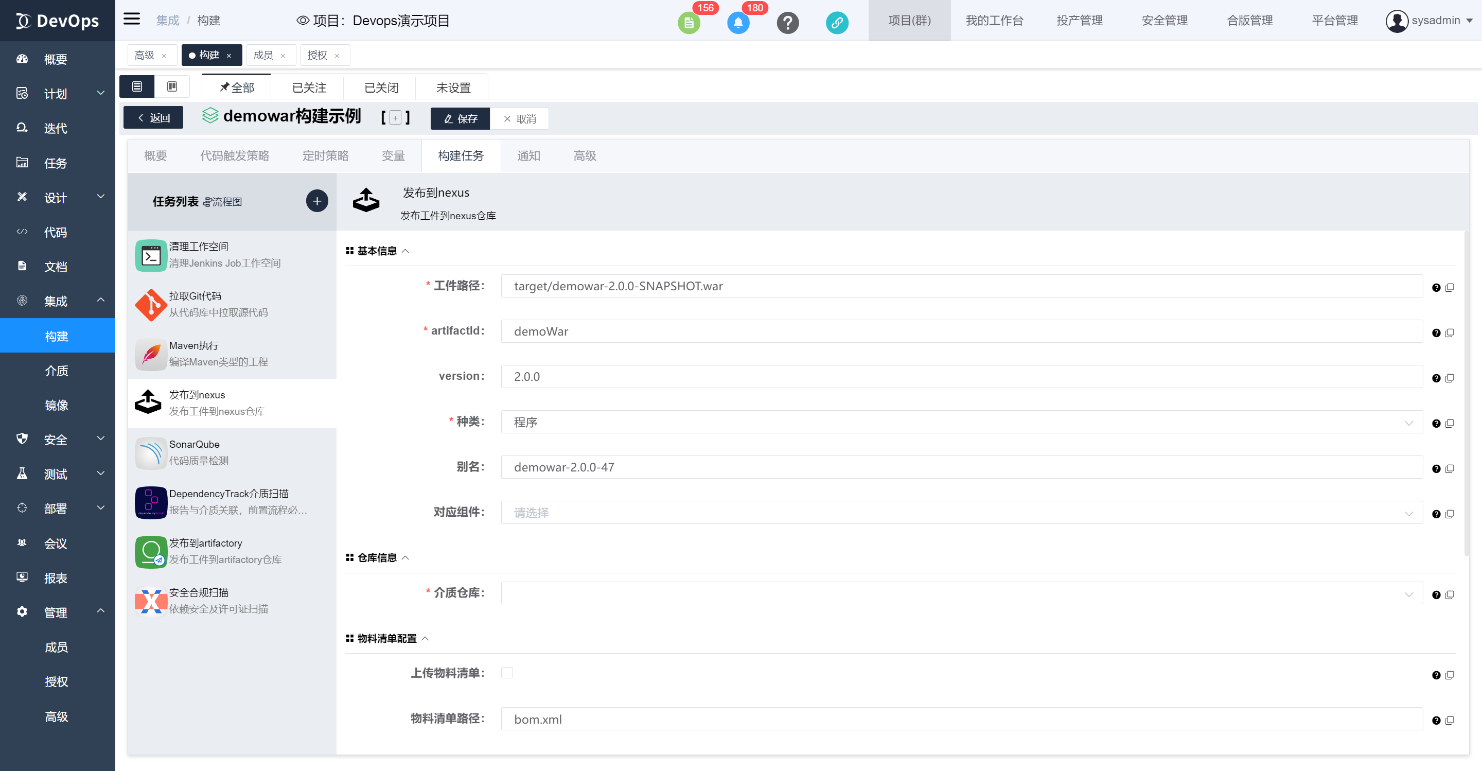 1)nexus上传介质任务:pipelineContext.global.nexusArtifactUrl = stageResult.artifactUrl;后续任务可以直接用${pipelineContext.global.nexusArtifactUrl}这种方式使用上传的介质URL。