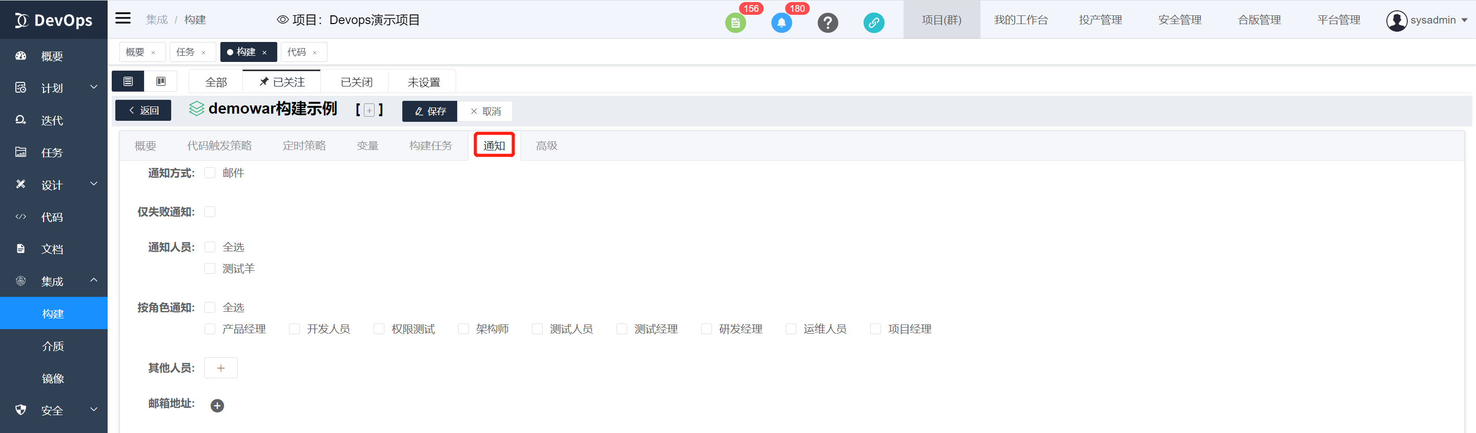 配置通知需要提前配置邮件服务器和确认构建通知模板