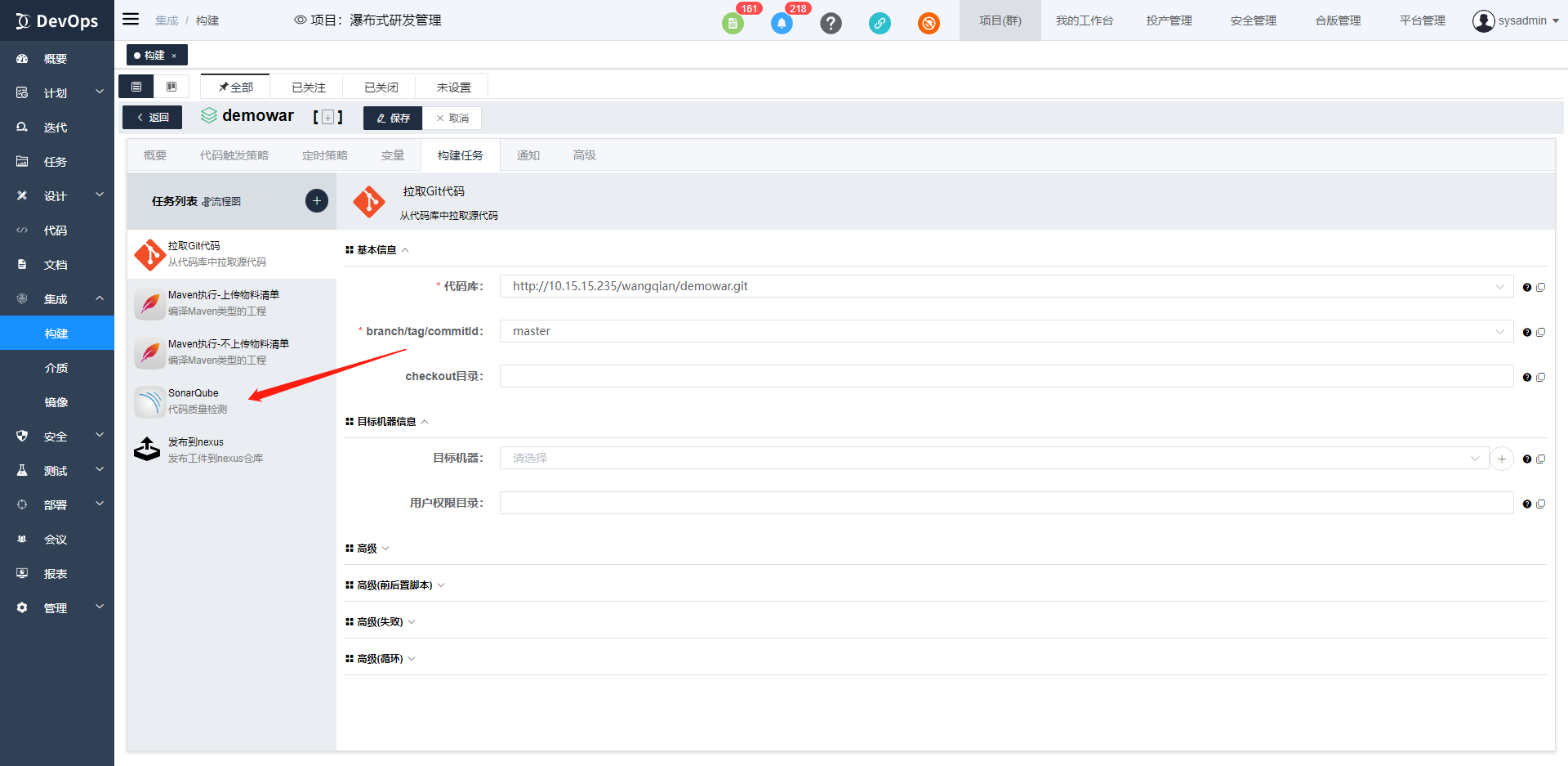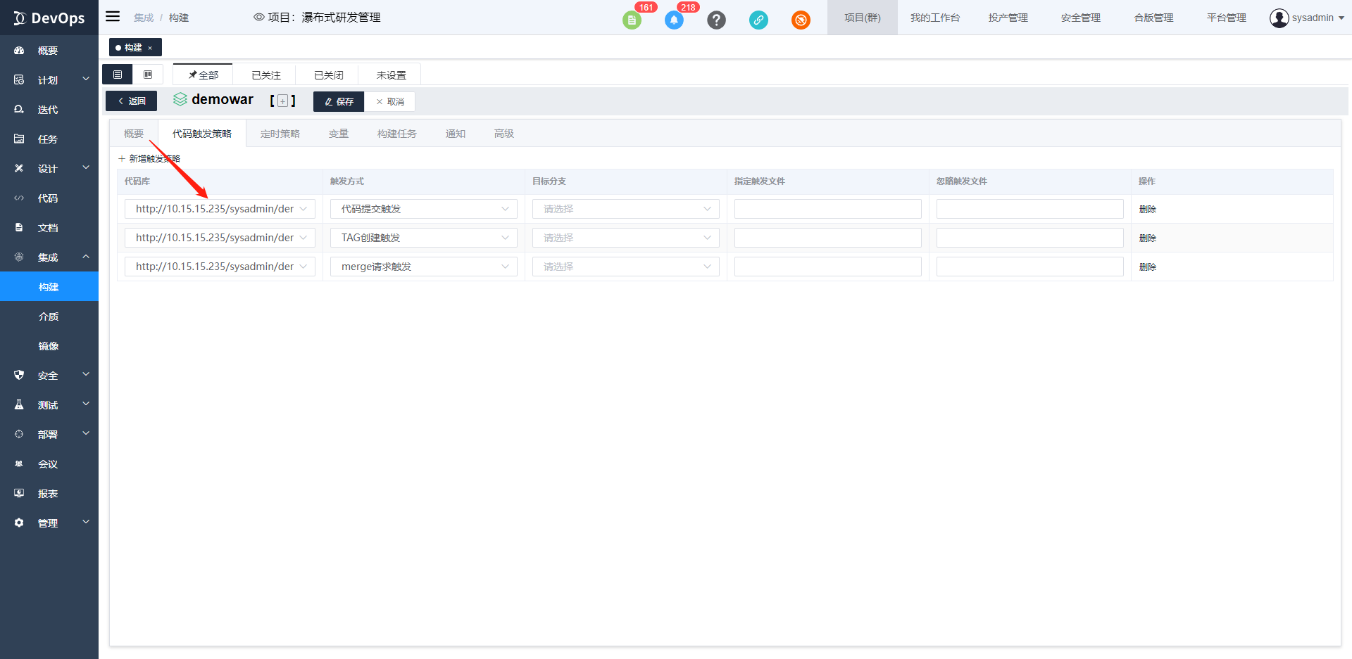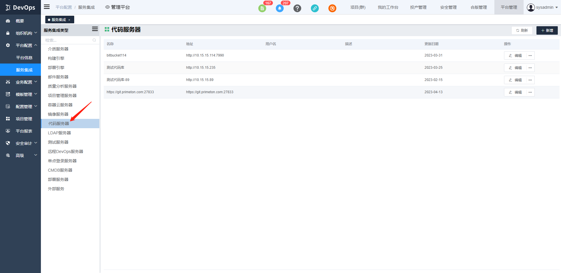 如涉及到代码库人员的变更,需要配置管理人员操作平台级功能,先配置代码库集成。