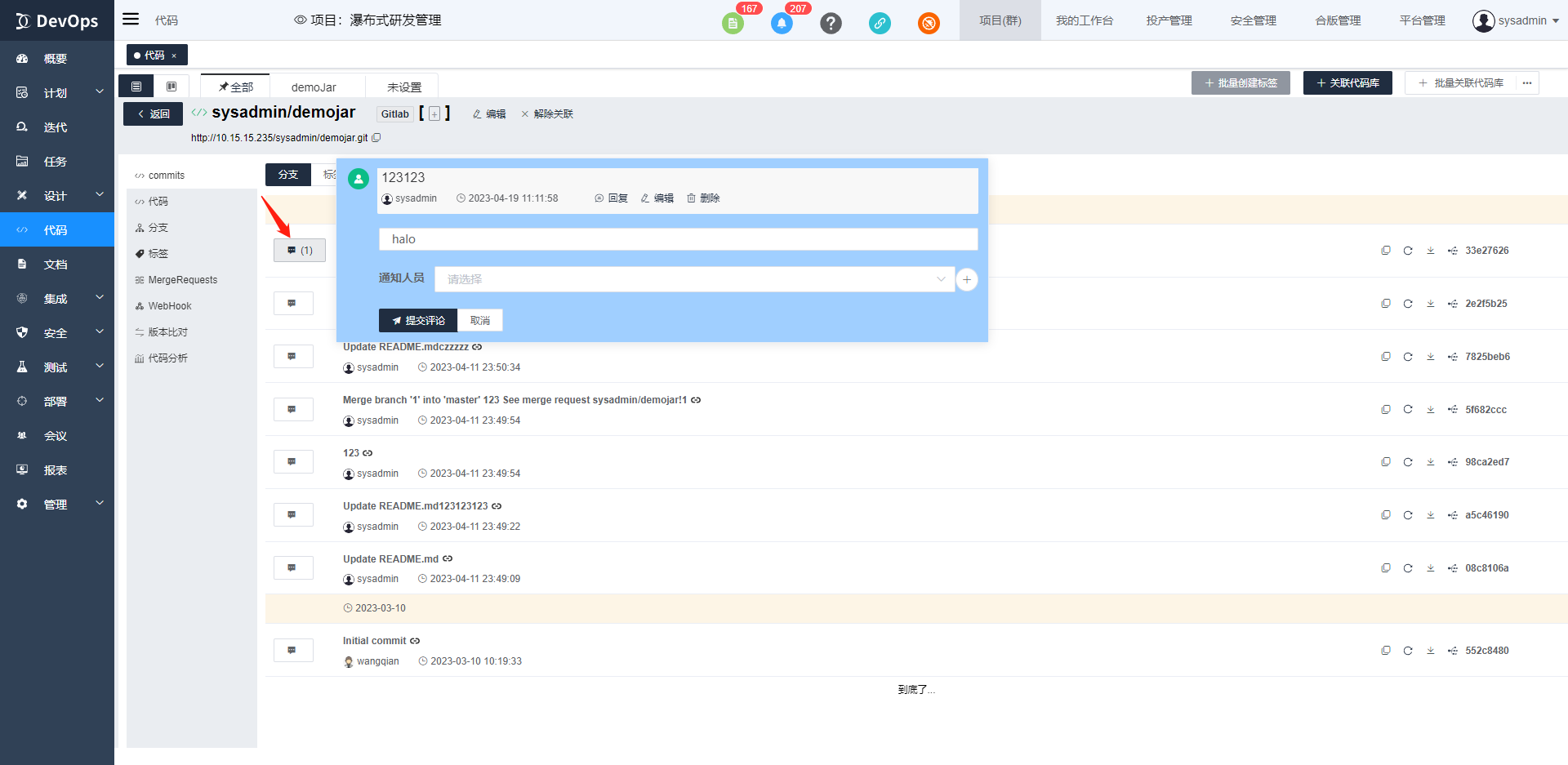 eg. 开发人员可以浏览commit记录并提供对应commit的评论,比如提出修正意见、提出疑惑等。