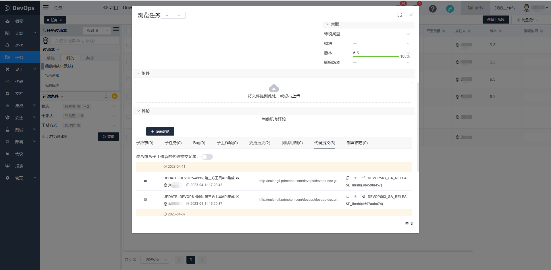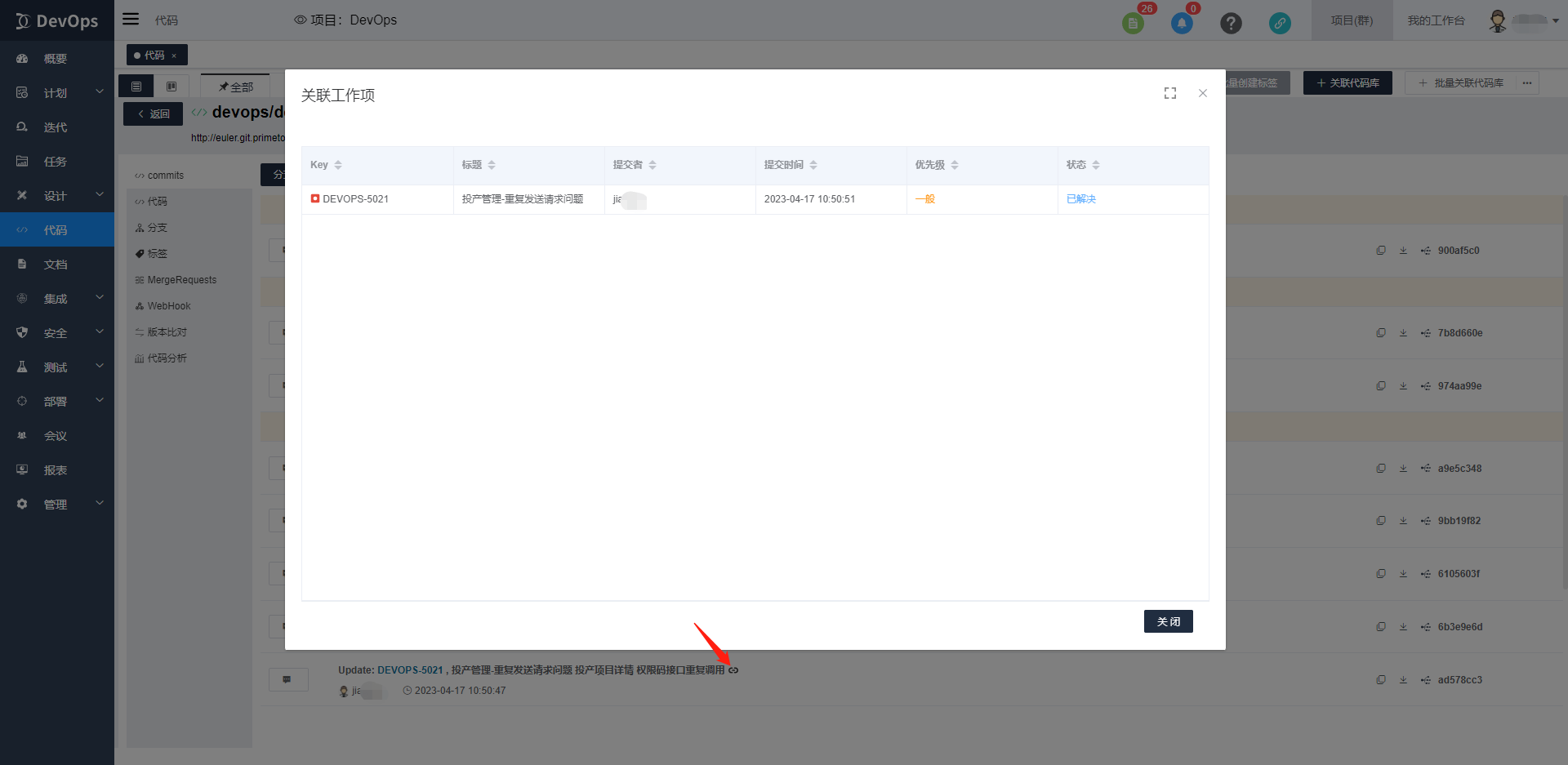通过代码库webhook能力,支持浏览代码提交记录关联工作项信息。