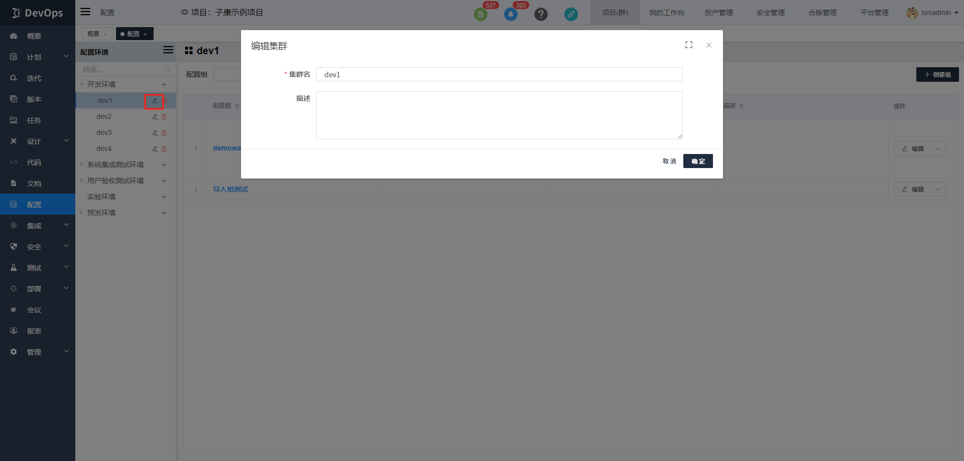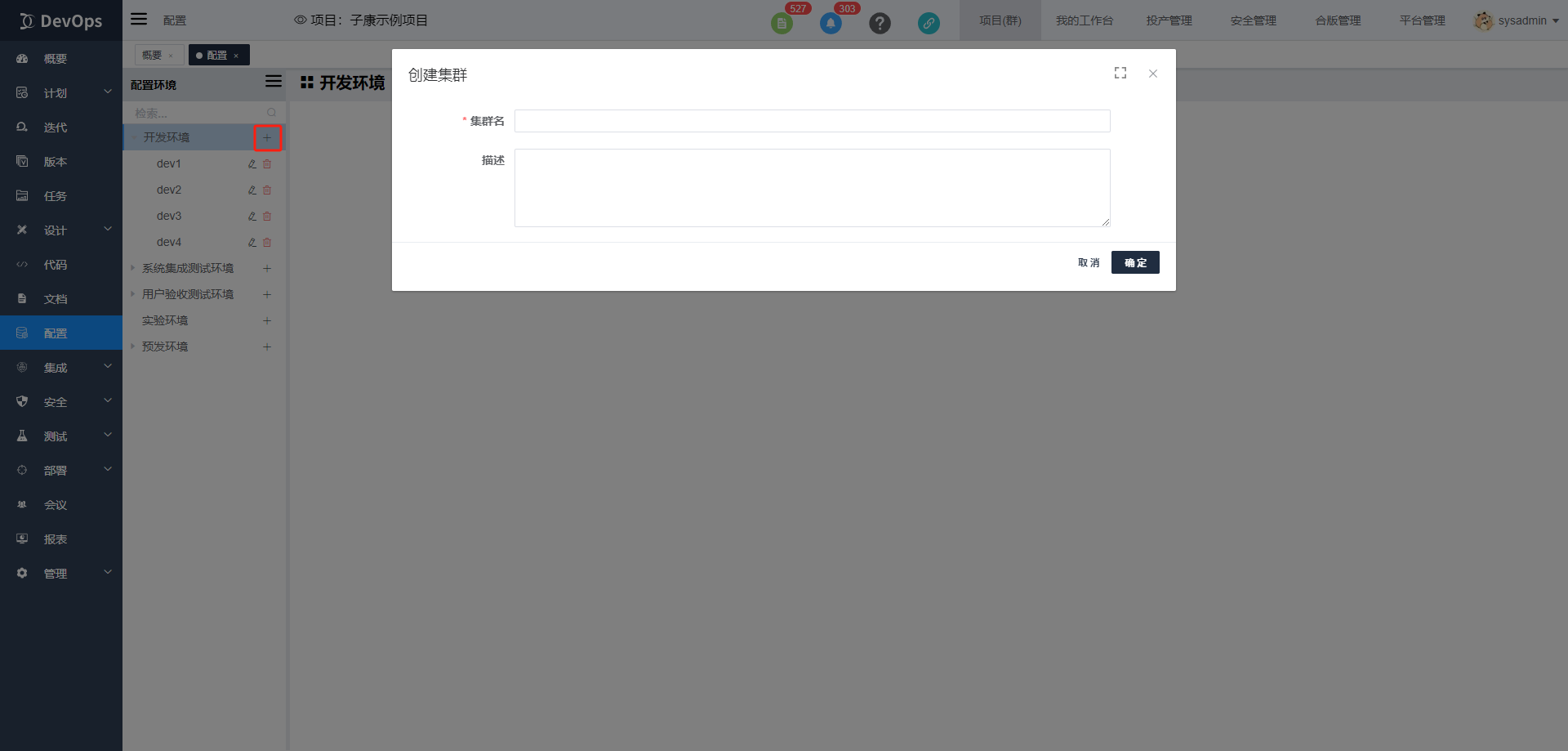 配置集群在这里的概念是在同一个环境类别下,不同的集群分区,如开发1区,开发2区等。