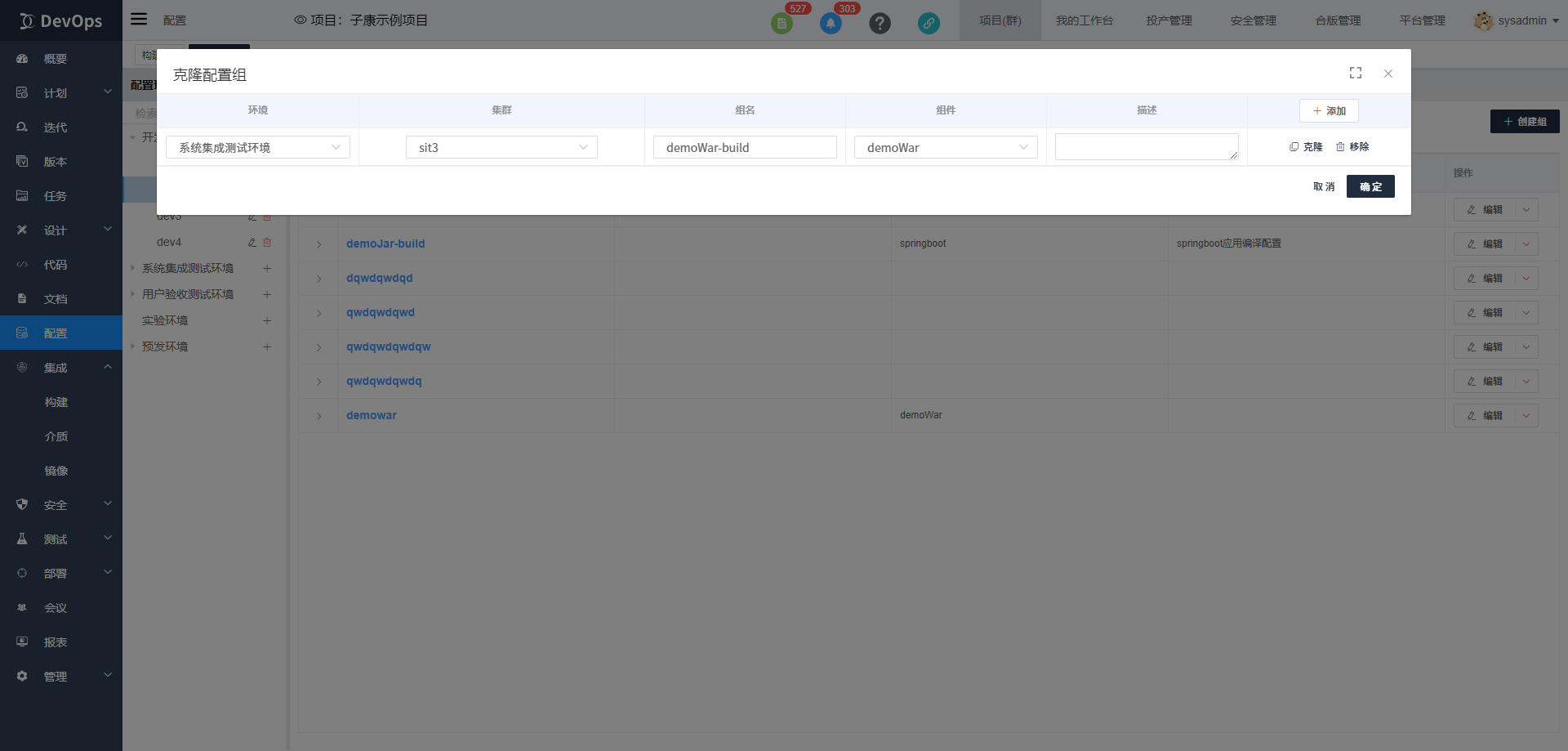 6.同时,当应用跨环境部署时,若新环境没有demoWar应用对应的配置组,可以通过克隆能力将配置组克隆至新环境。