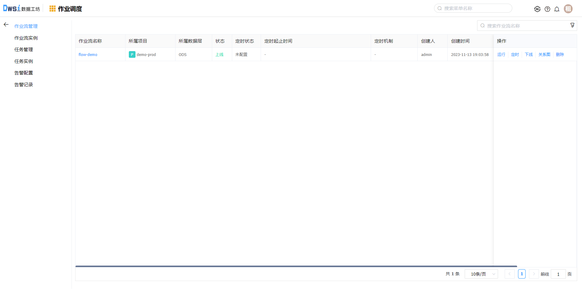 2. 点击上线操作,作业流状态变更为“上线”。