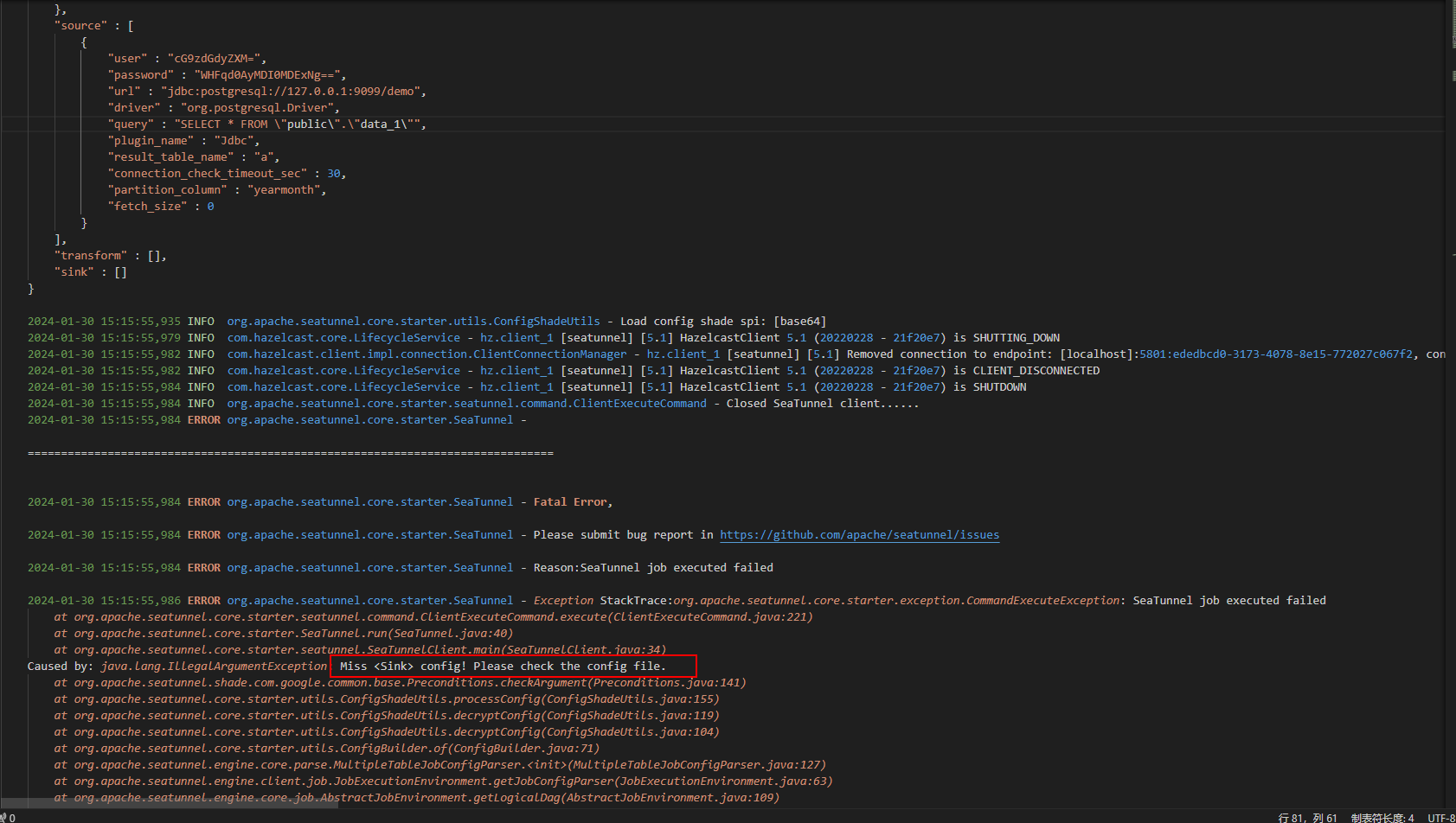 # Q: 数据同步作业-创建的模型:关系型数据源-HiveSink,保存后运行模型报错:Miss <Sink> config! Please check the config file。