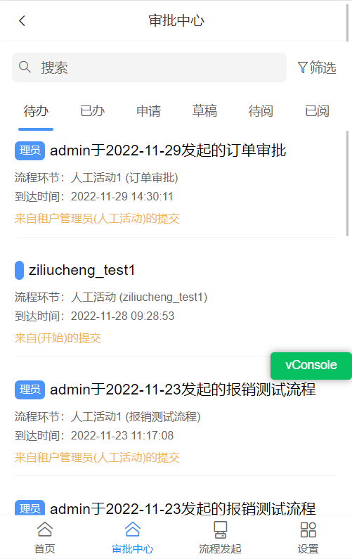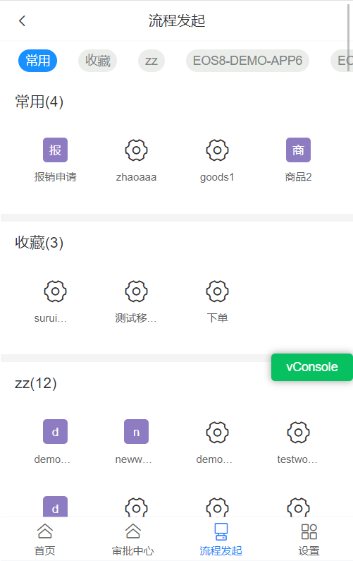 AFCenter移动端主要包括登录入口、流程工作台、审批中心、流程发起等页面