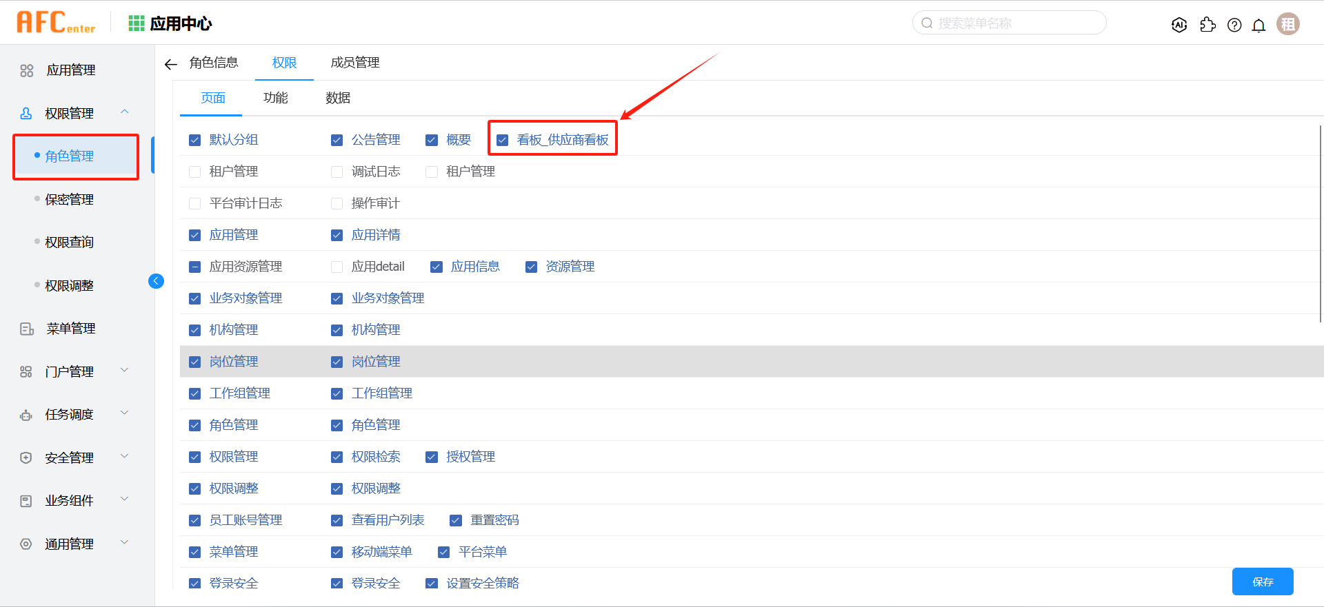 在移动端看板菜单下,创建供应商看板的子菜单,点击保存。
