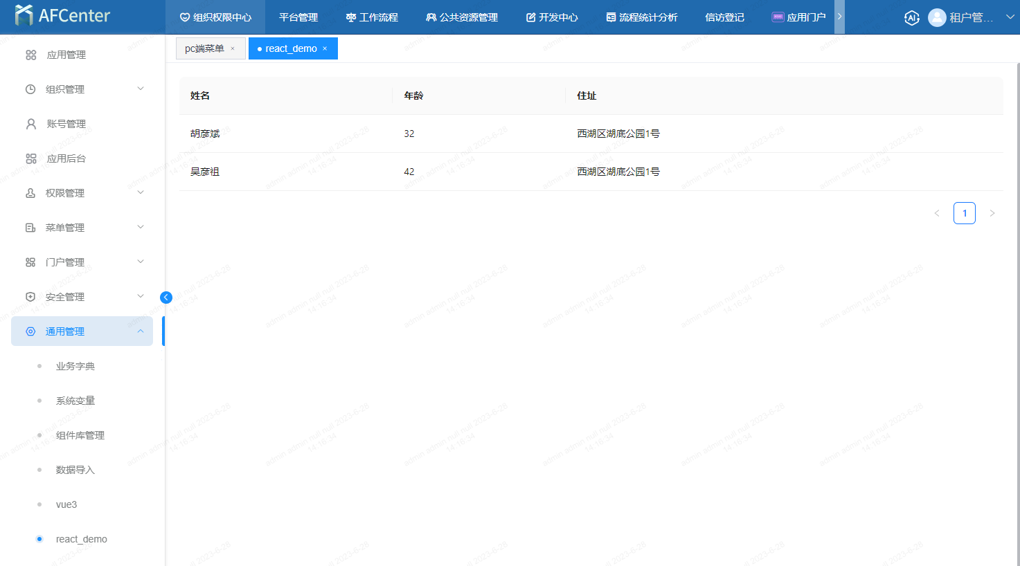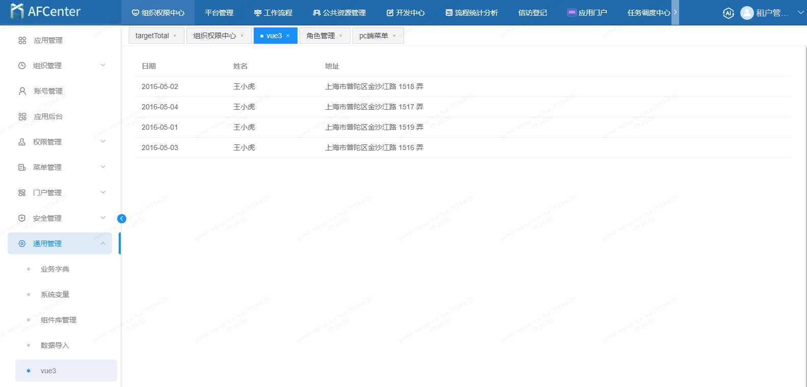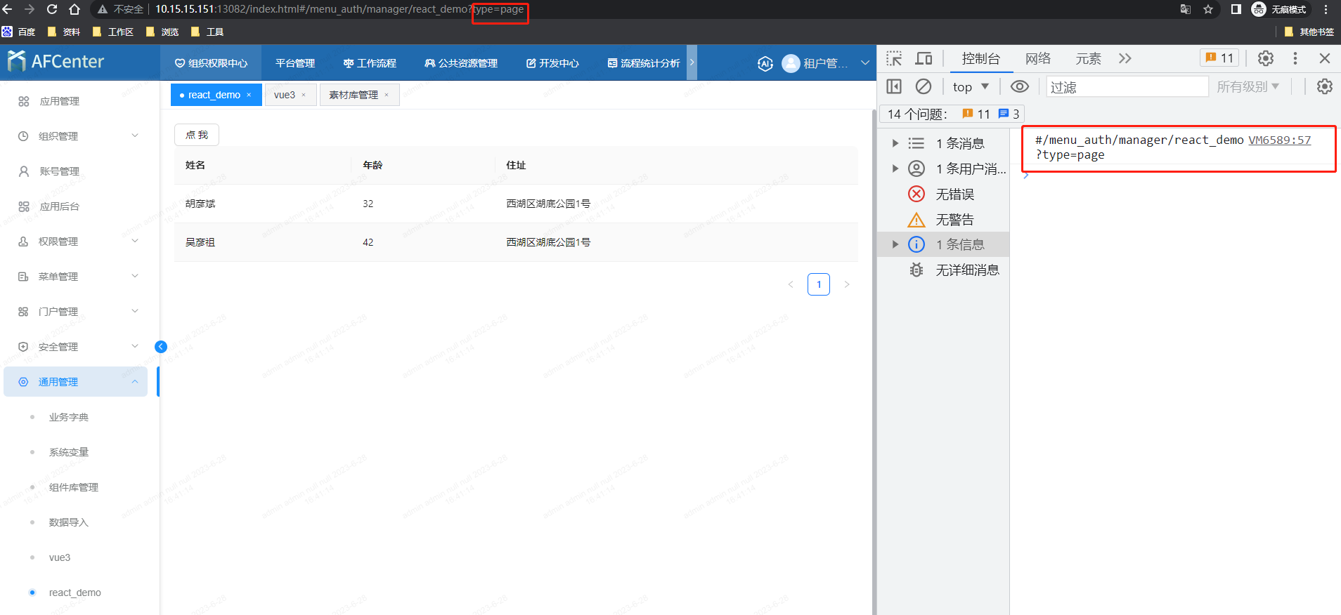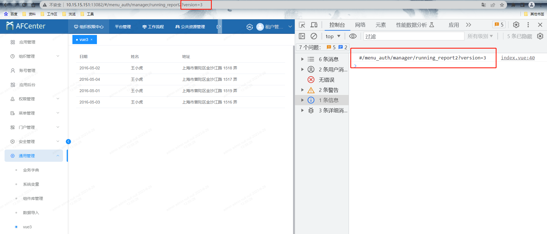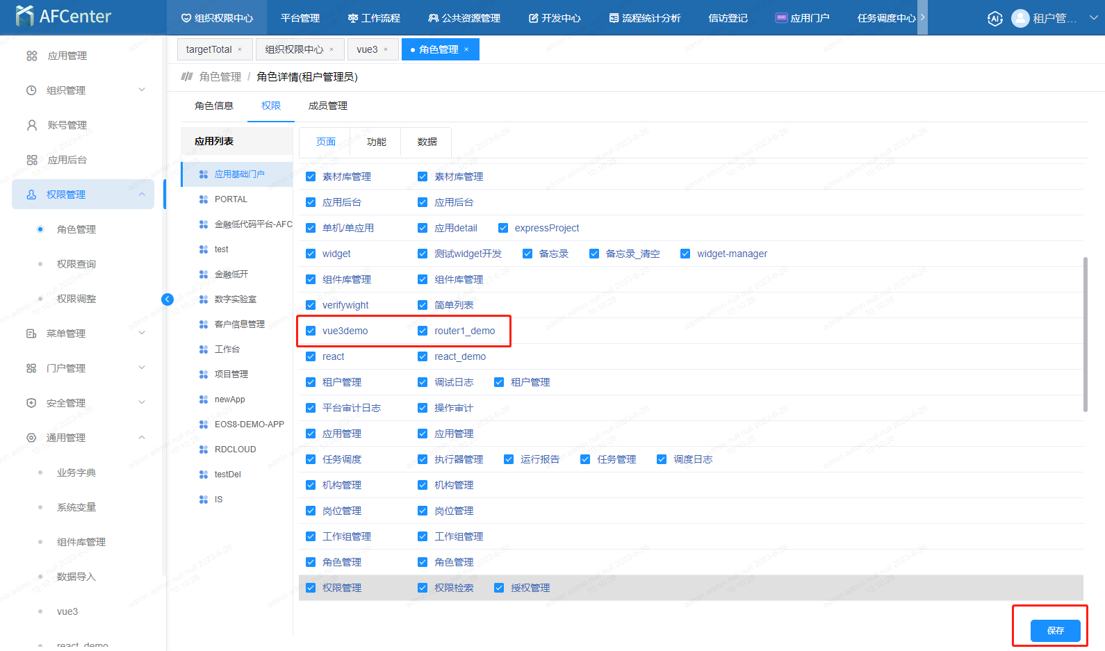 这里列举两个异构微前端页面挂载在afcenter菜单中展示的操作步骤,vue3和react类型项目。