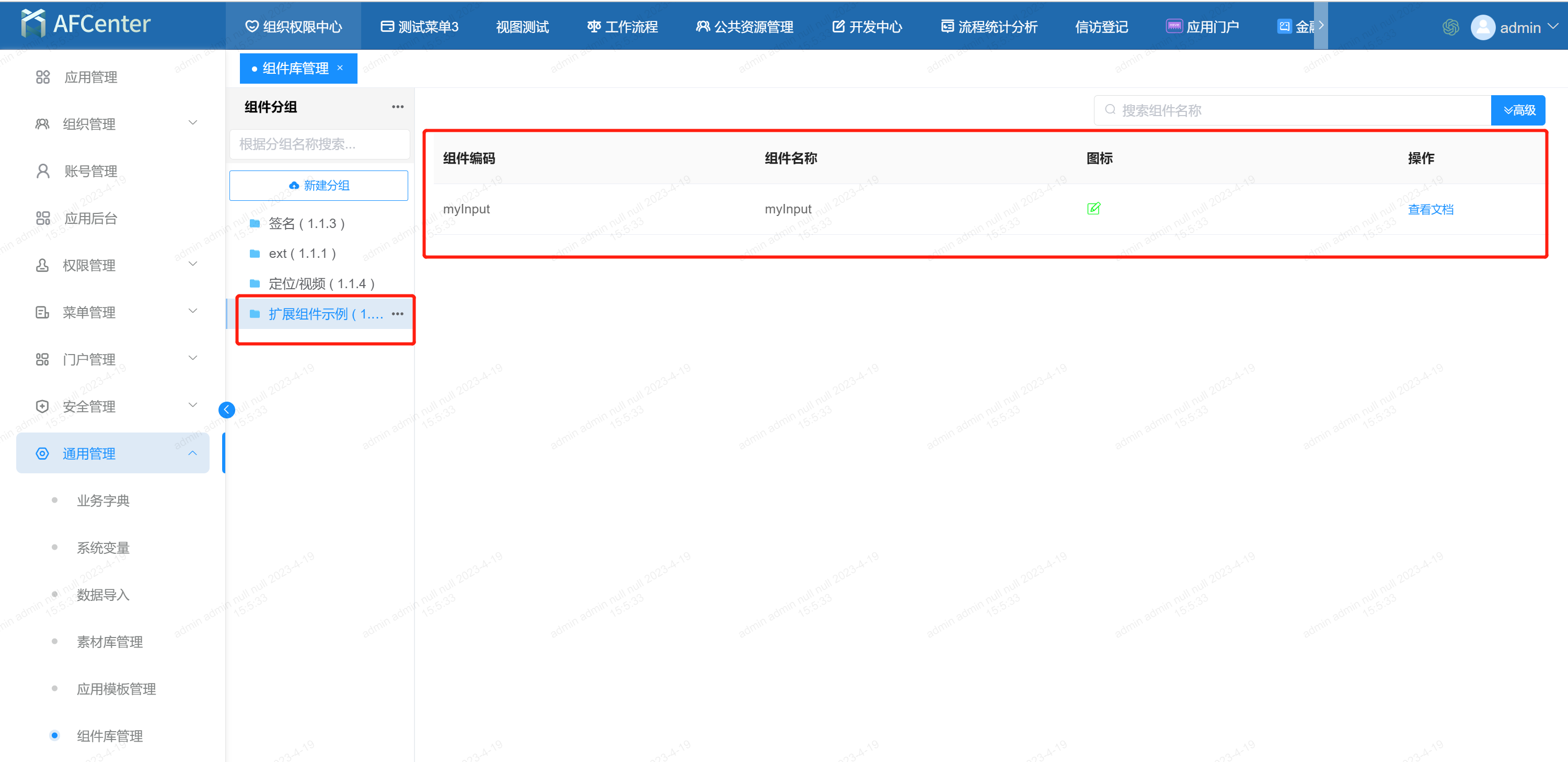 在组件库上传扩展组件基础开发的zip文件,确保组件库存在扩展组件信息