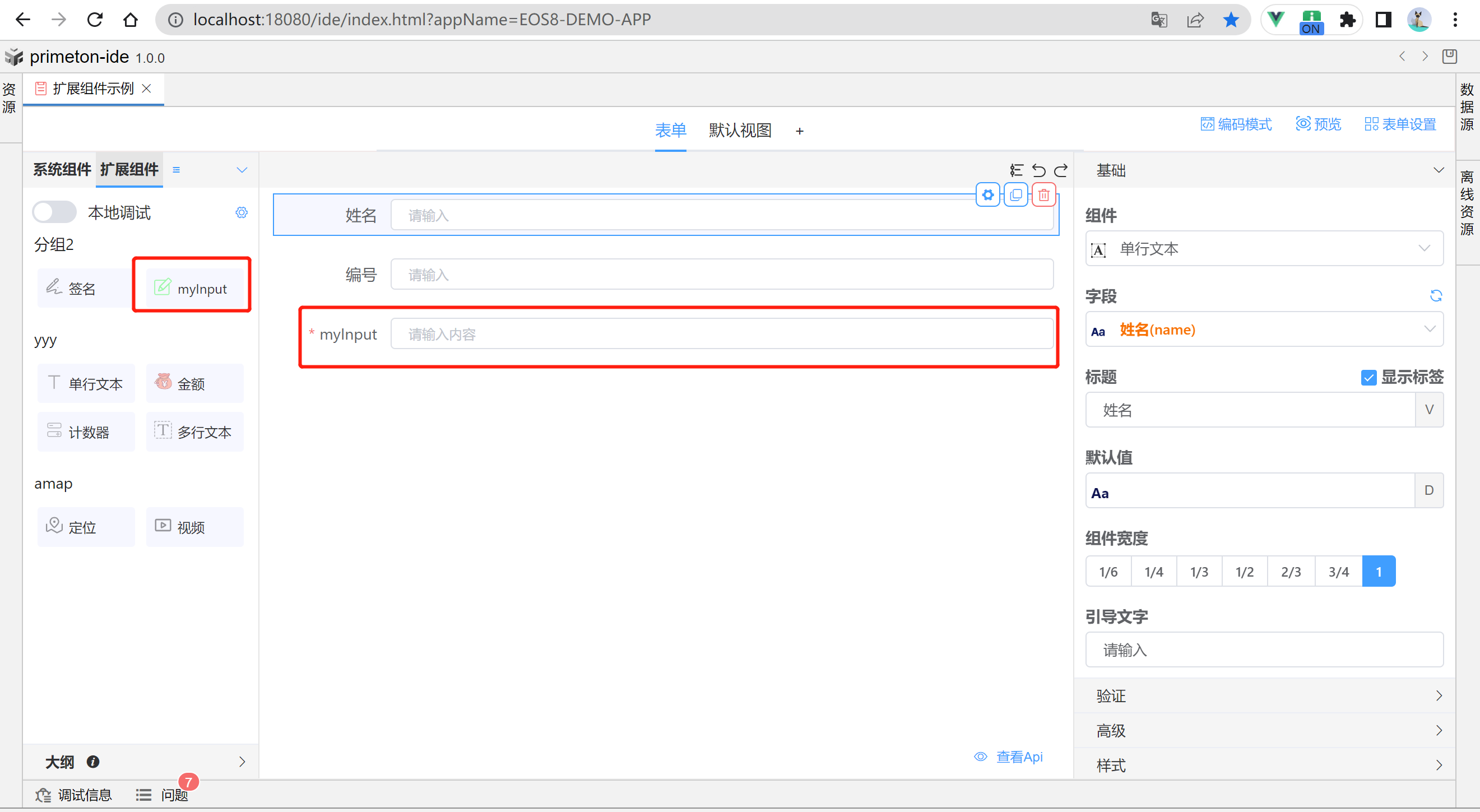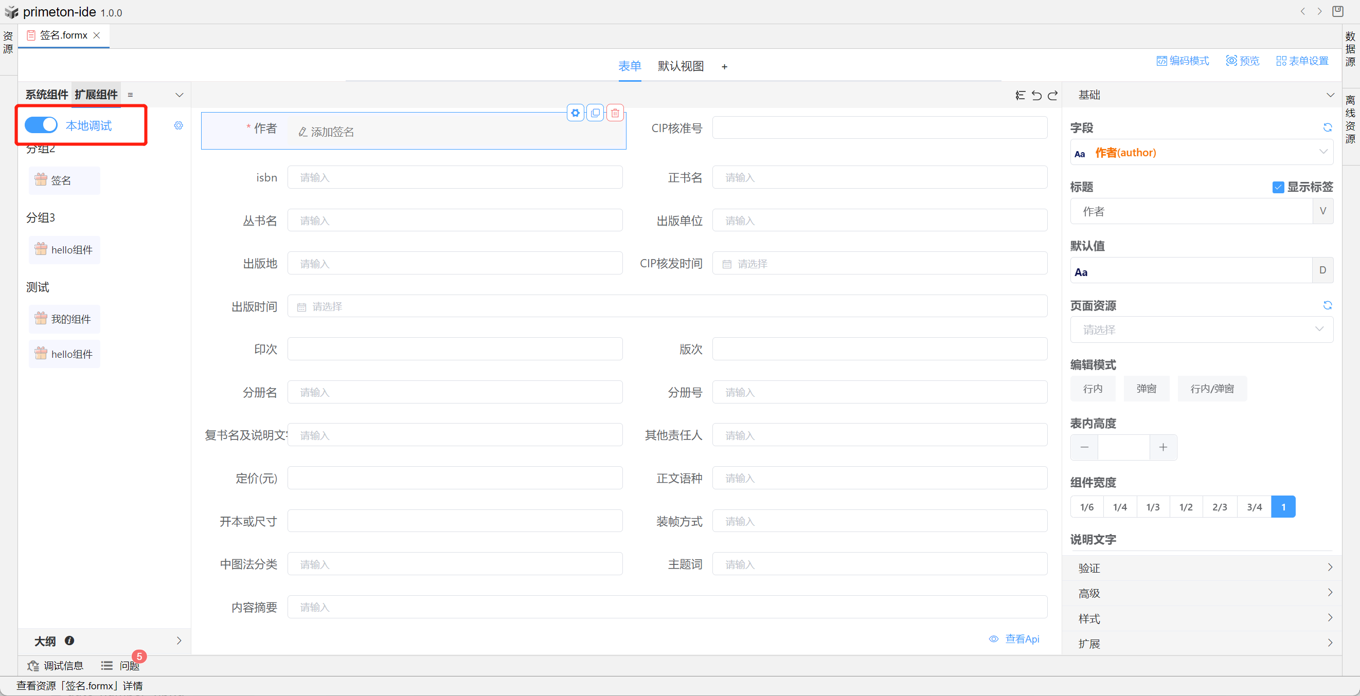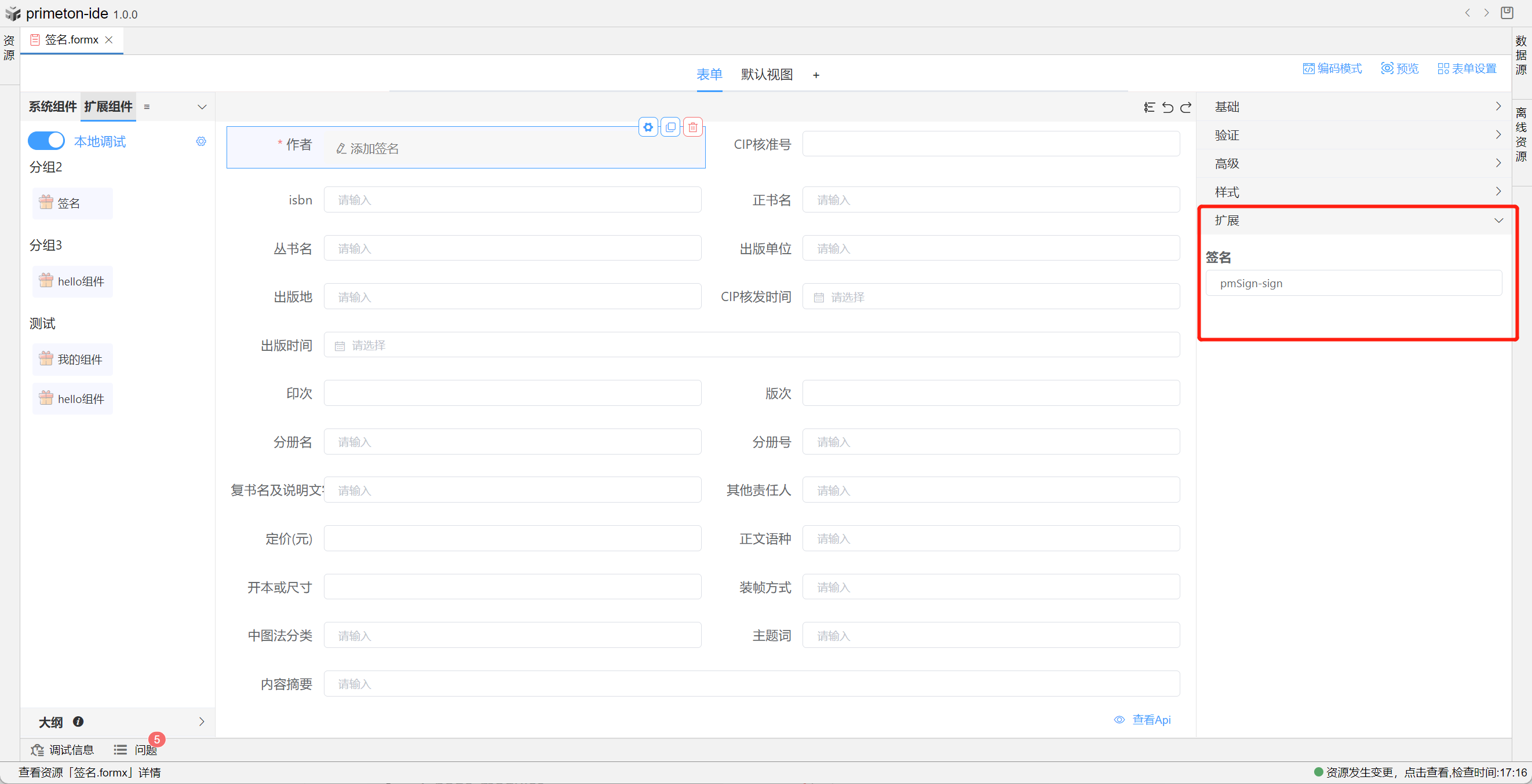 成功连接本地组件扩展项目后,可进行本地开发。本地项目更改保存后会实时更新到表单。