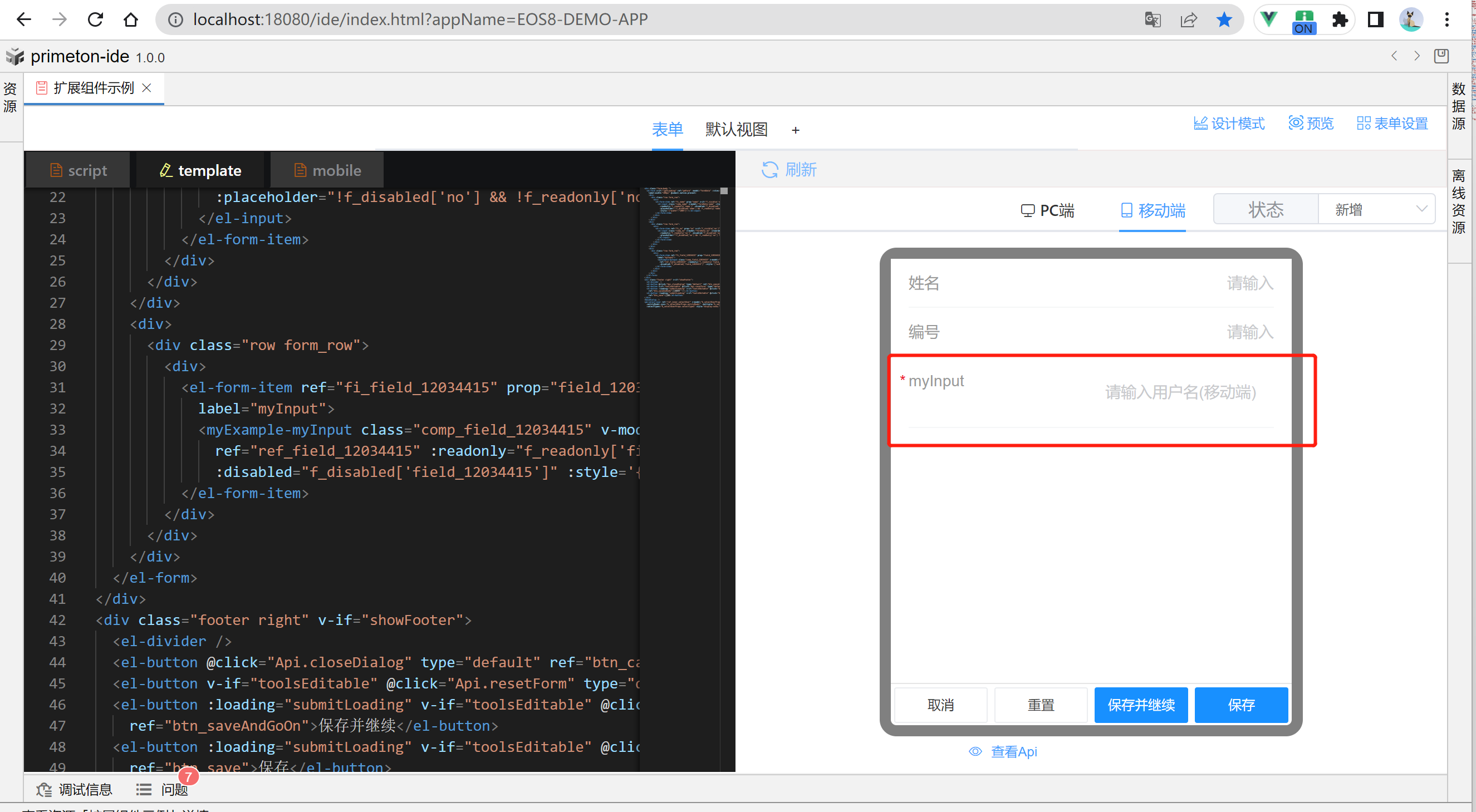 IDE表单开发页面组件可使用组件开发框架进行自定义开发。