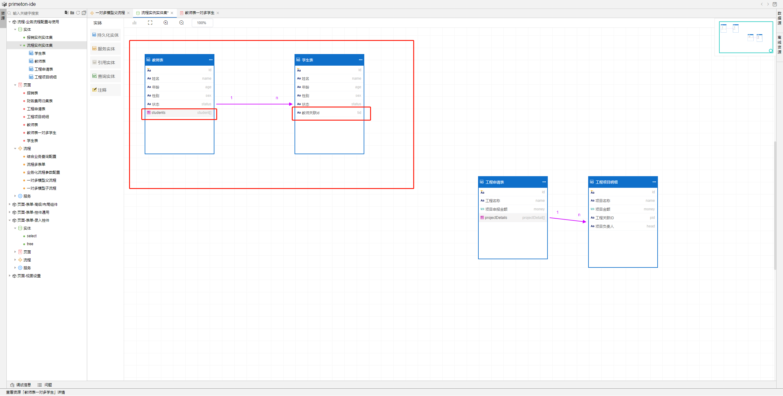 1.创建1:n数据模型,并绑定关联关系。