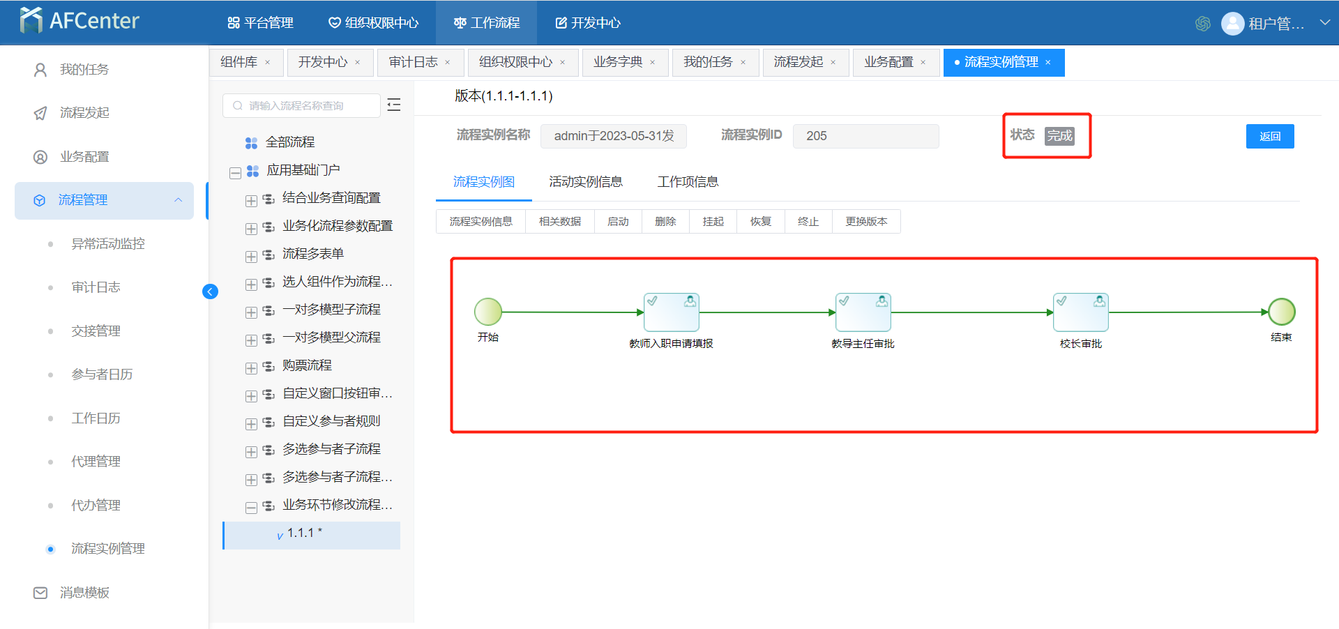 5.在流程中配置好后可以再AFCenter平台的工作流程配置中使用,根据业务动态修改业务参数的值。