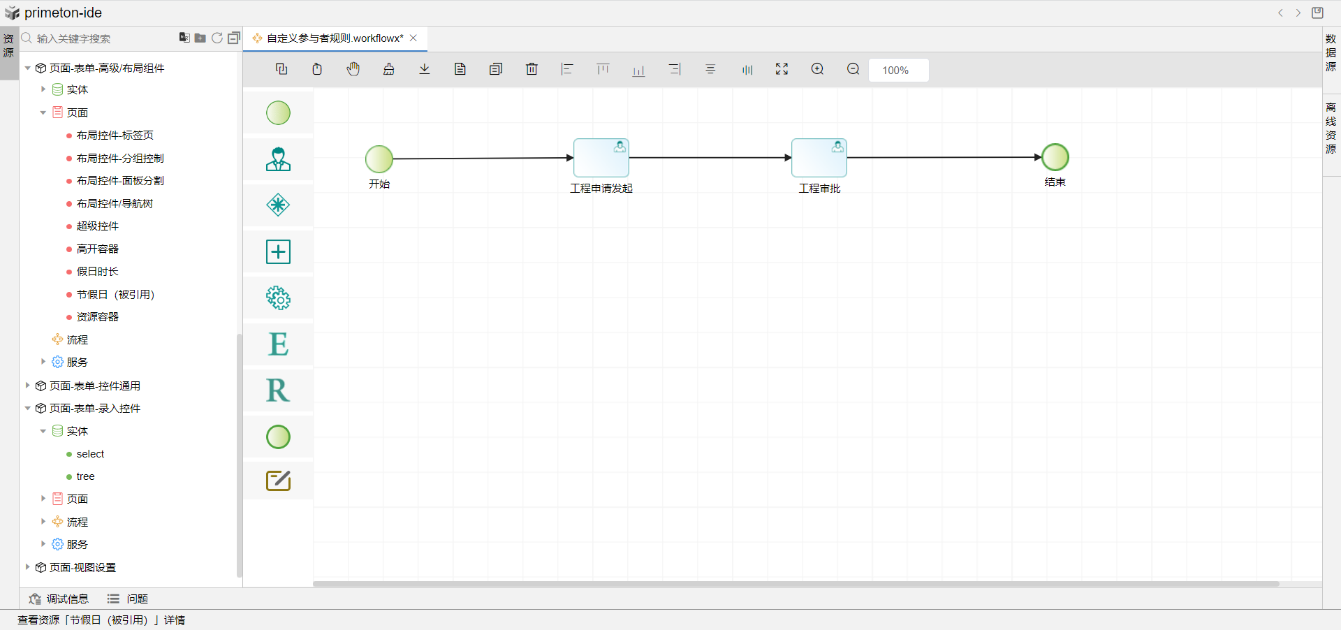 4.双击工程审批图元,选择参与者tab页,点击选择下方引擎参与者规则,绑定刚刚创建的参与者规则即可。
