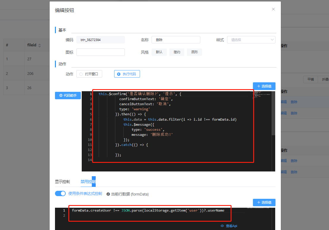 this.Api.hideElements(['button_83039646','html_69028416']) //隐藏控件 (参数是控件名)