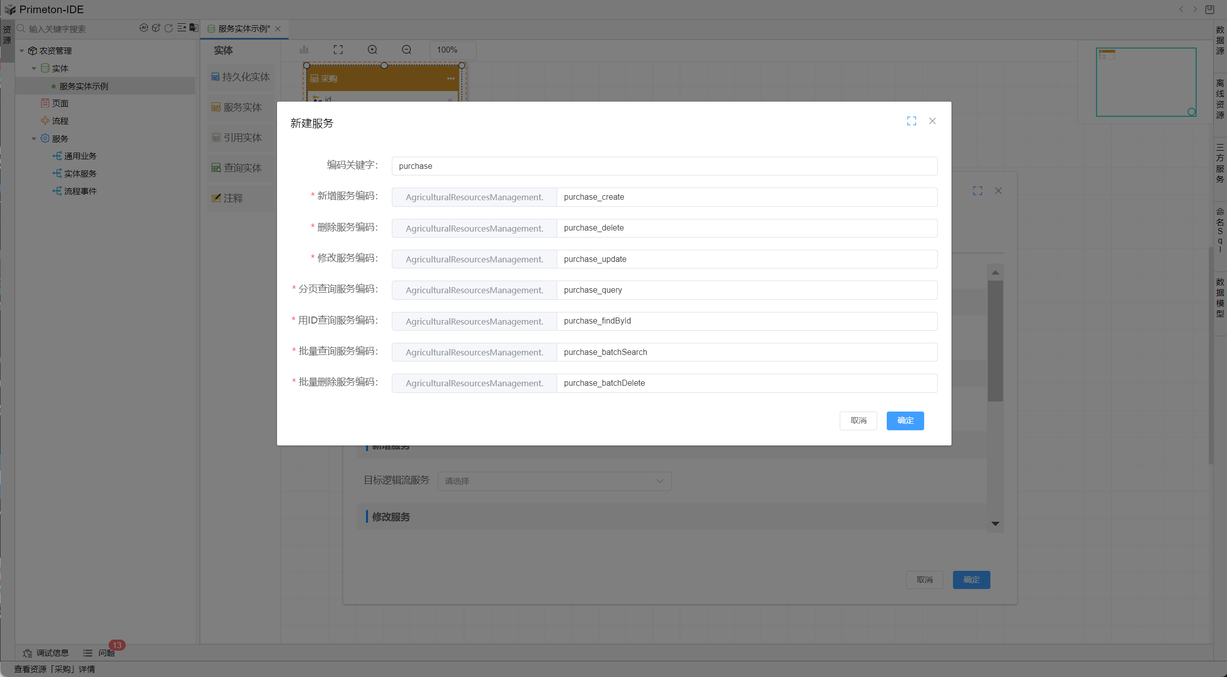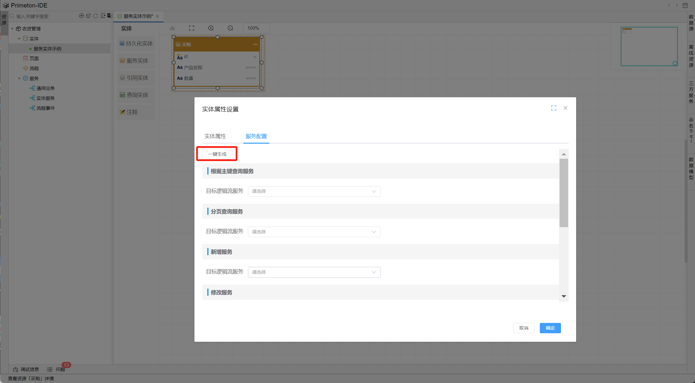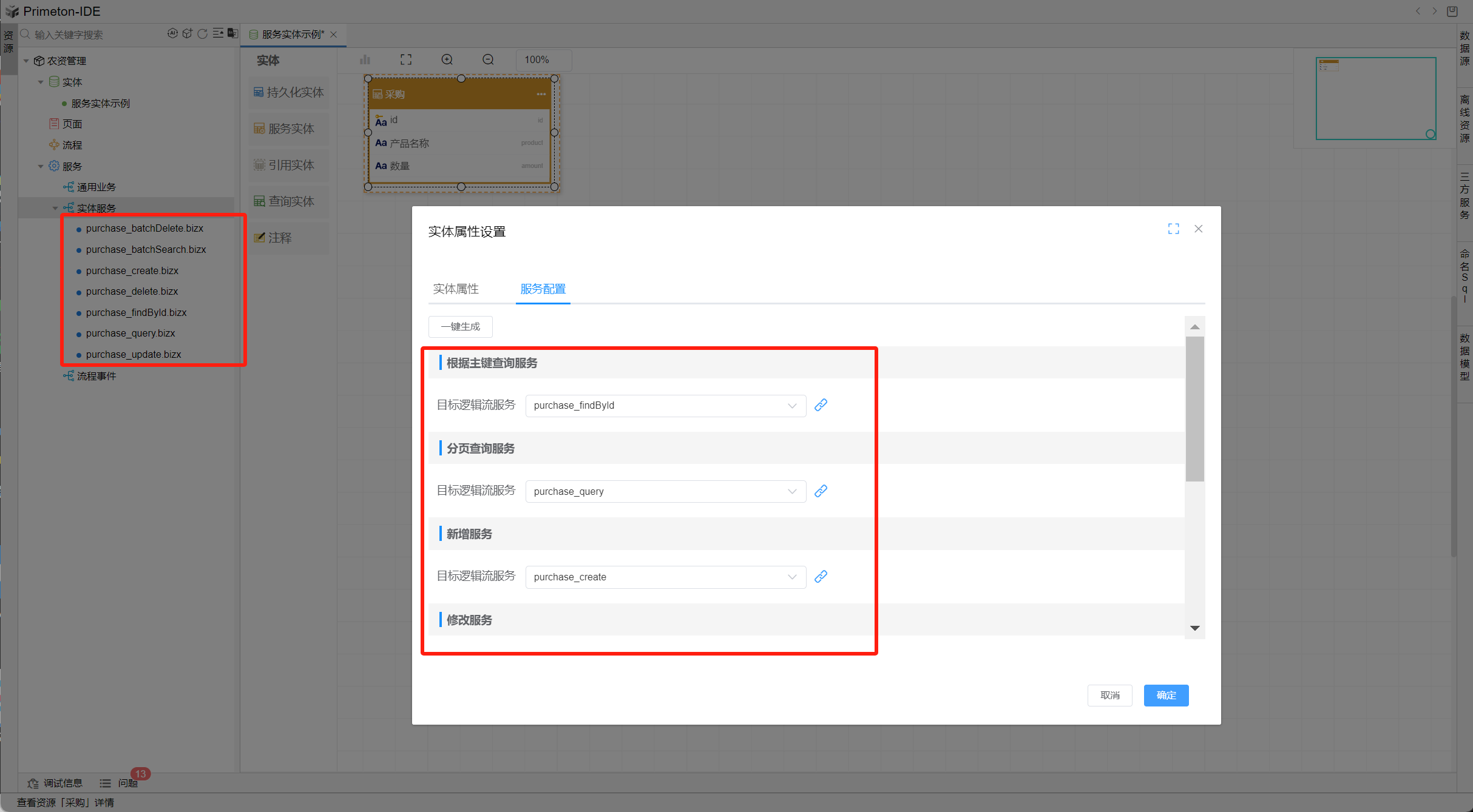 确认生成服务后,可以在服务下实体服务中查看已生成的服务。