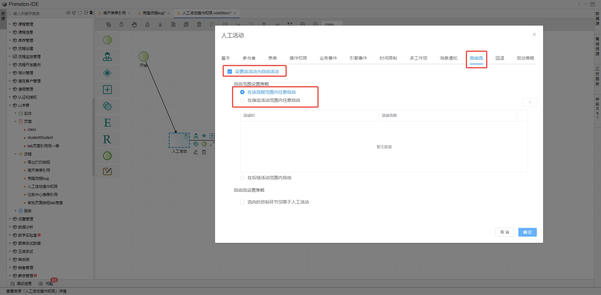 在之前指定后续环节配置基础上,添加自由流配置。