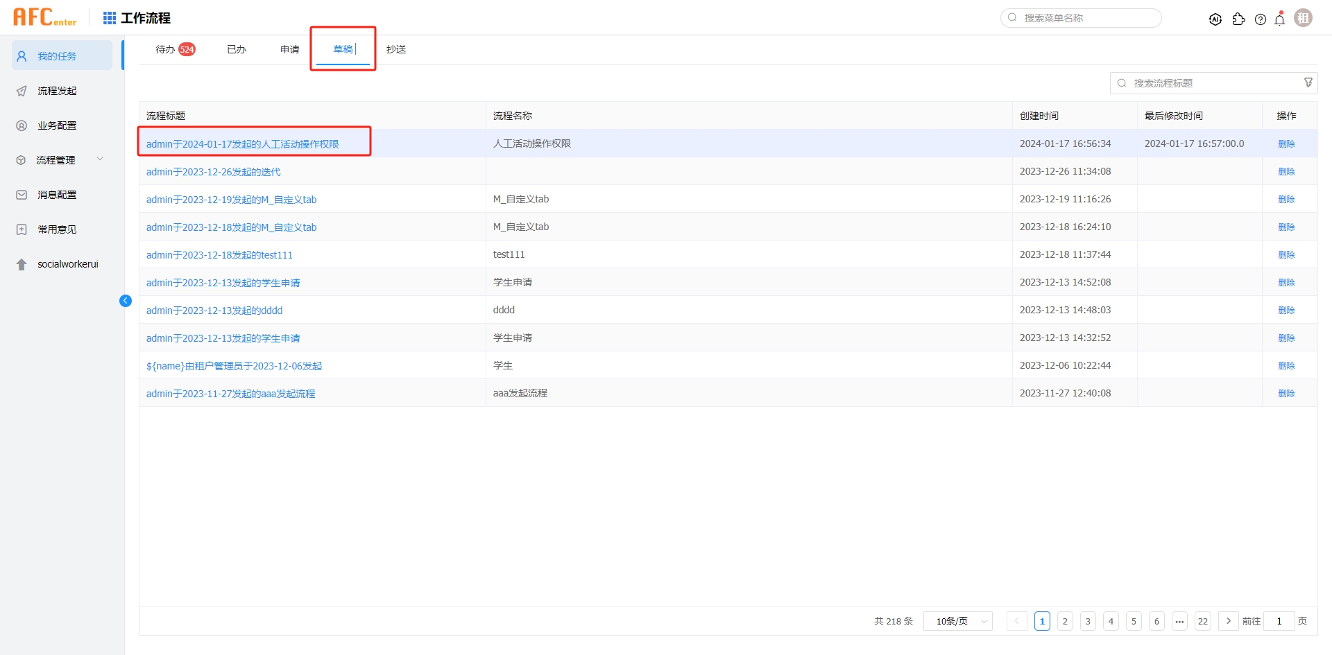 如果是保存业务表则业务数据直接进到业务表中,在我的草稿中就看不到。