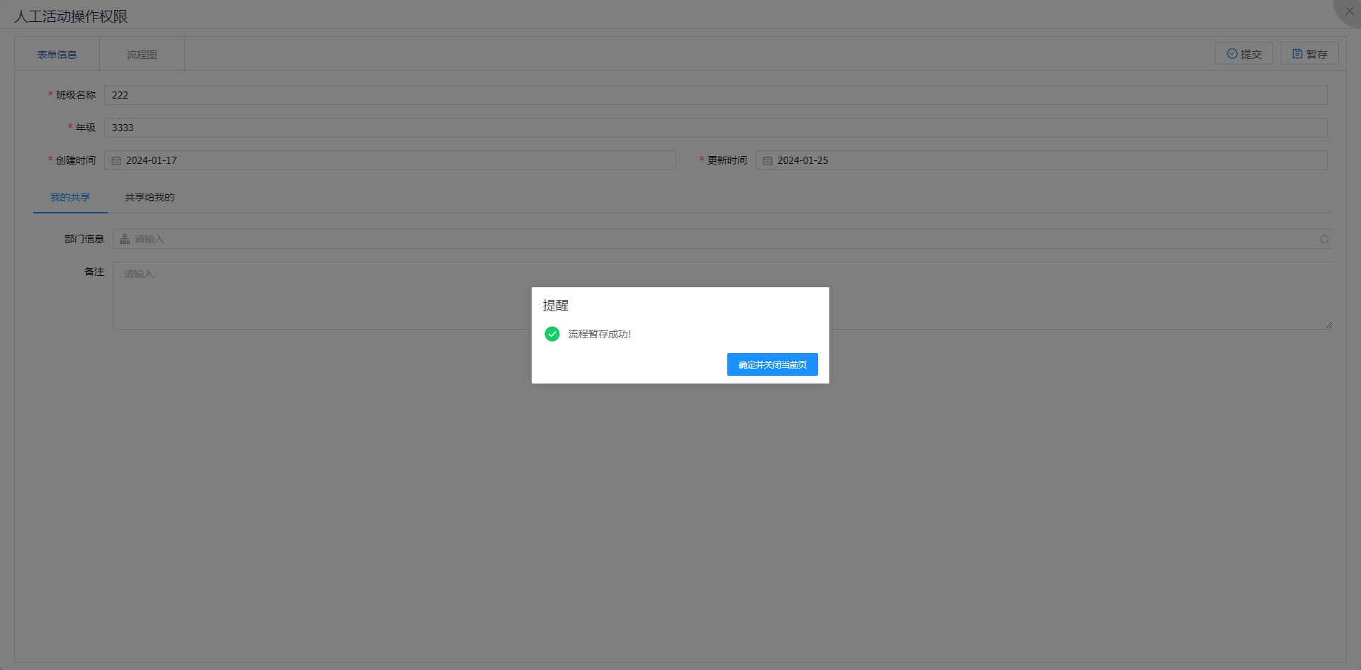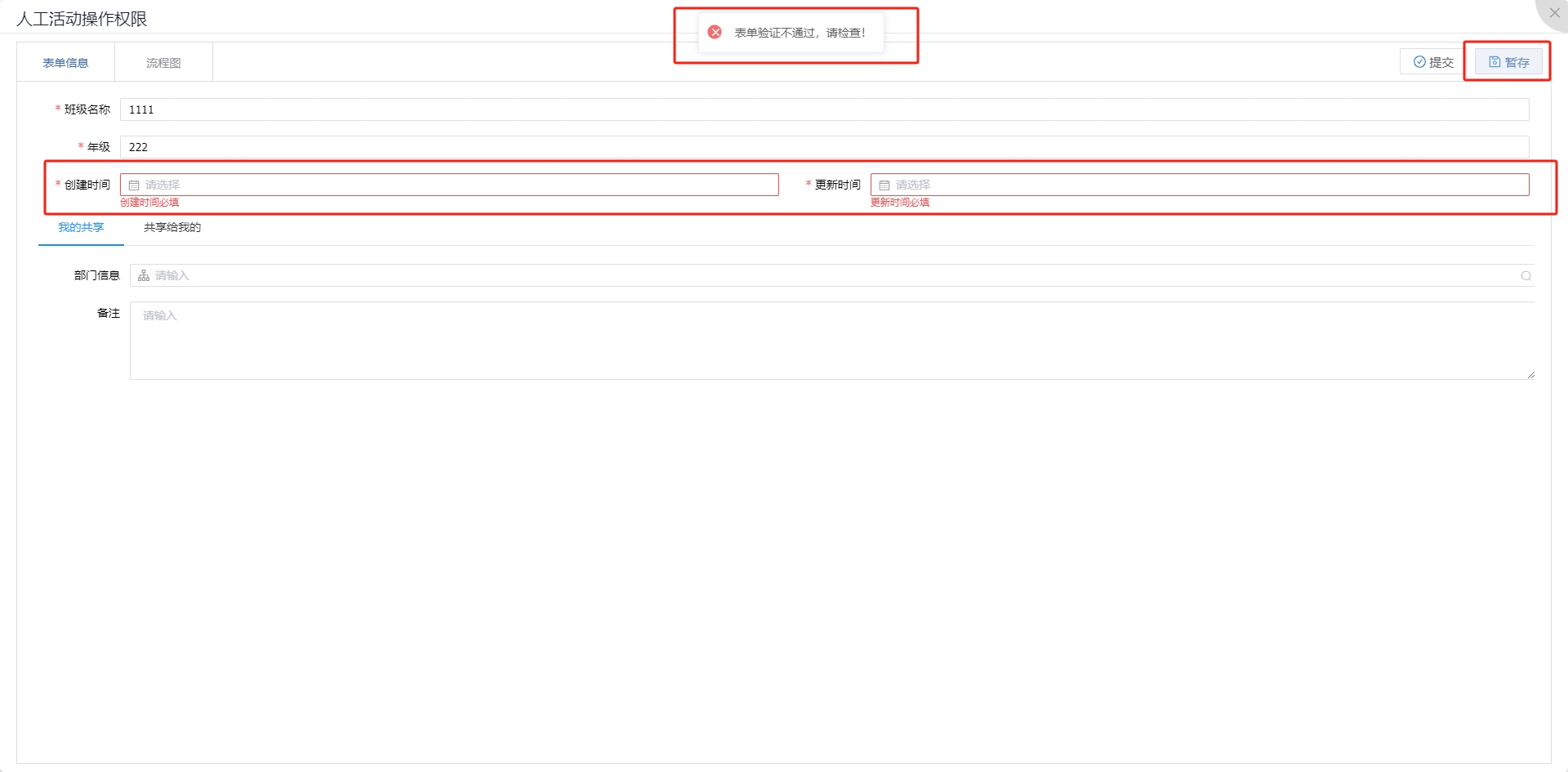 暂存开启表单校验后,流程暂存时会对表单进行校验。