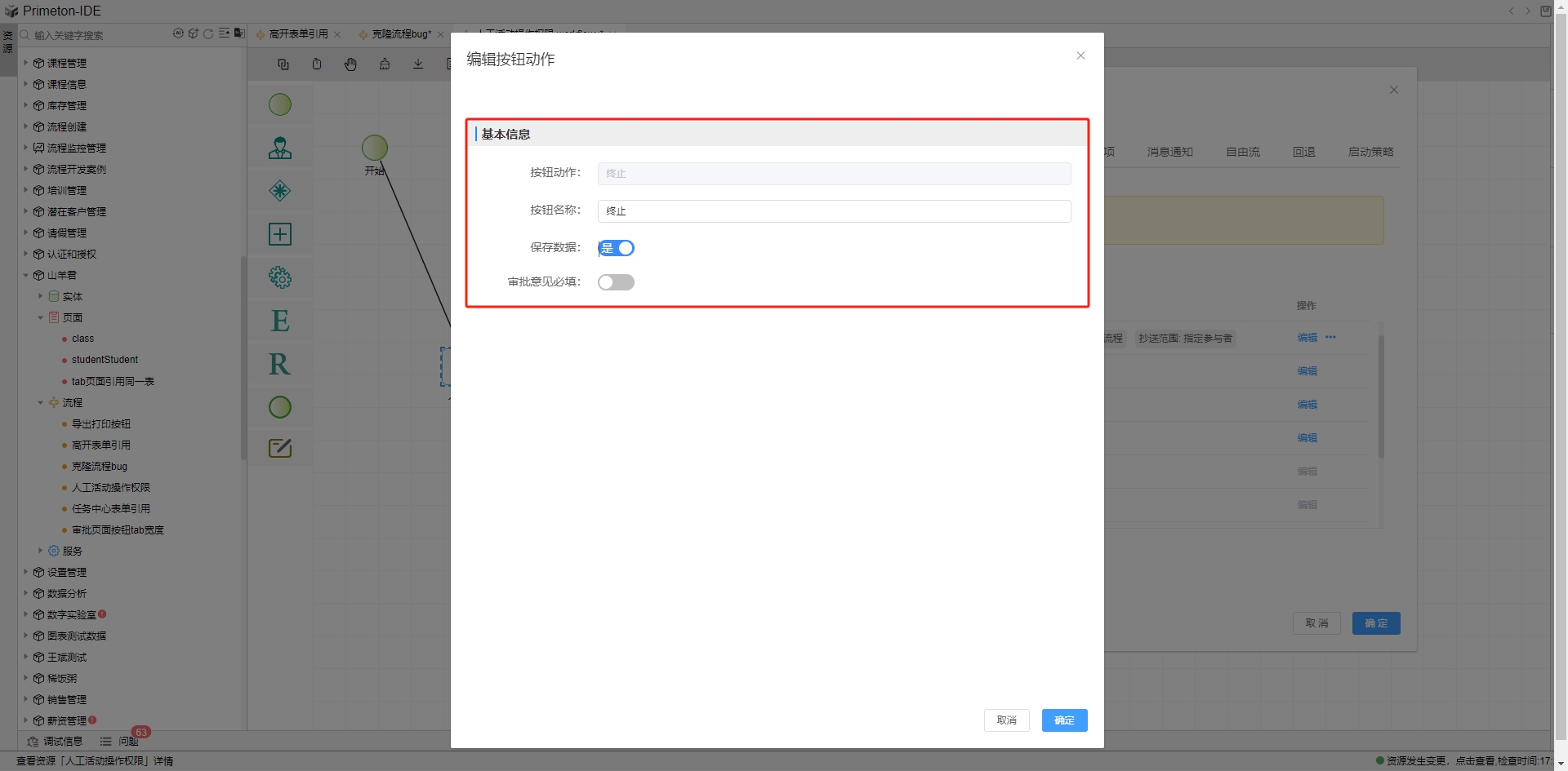 基本信息中按钮名称是可以根据用户需求自定义修改的,保存数据按钮的含义为保存流程表单中的业务数据。