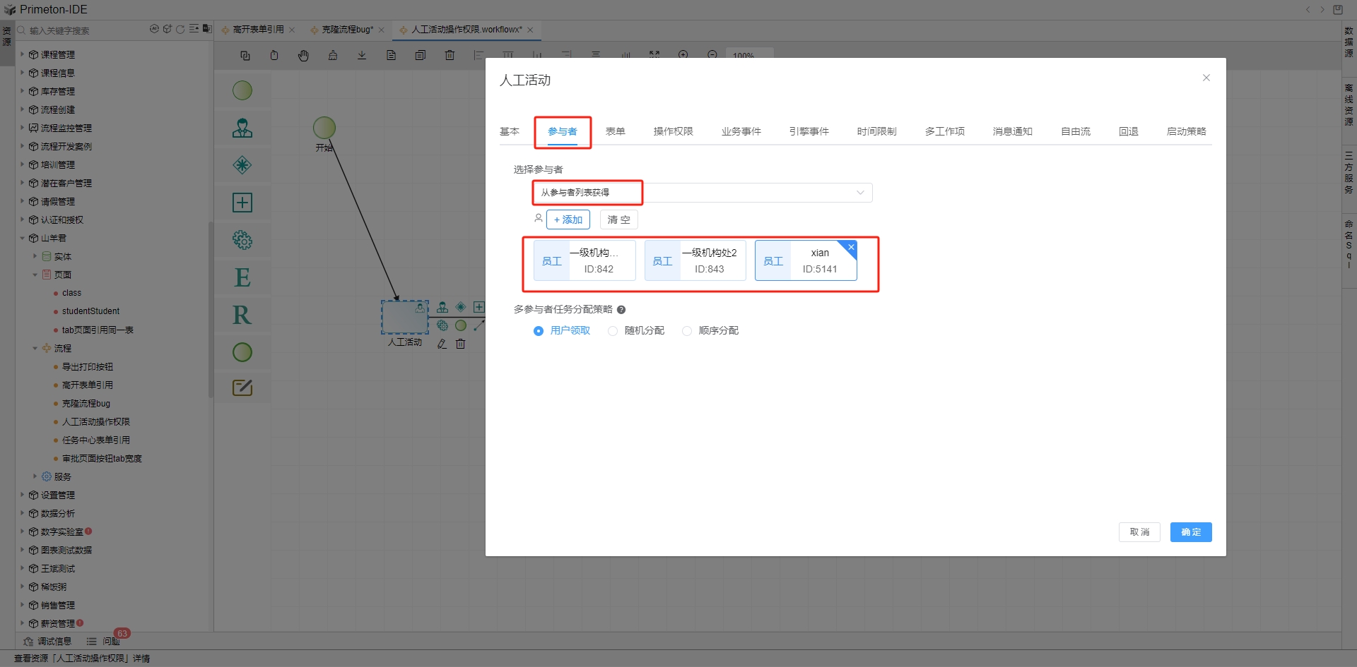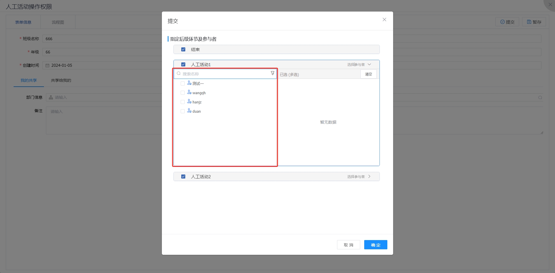 - 指定参与者 - 在所有人员列表弹框中选择特定的人员来进行审批