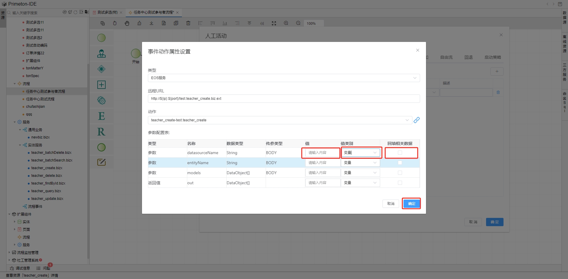 事件动作是指触发事件被触发时,业务流程引擎触发的动作。支持EOS服务、逻辑流和运算逻辑。