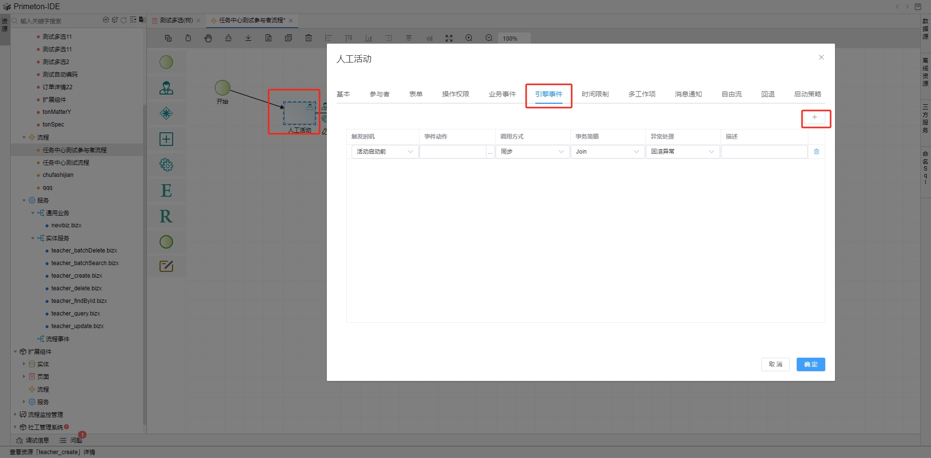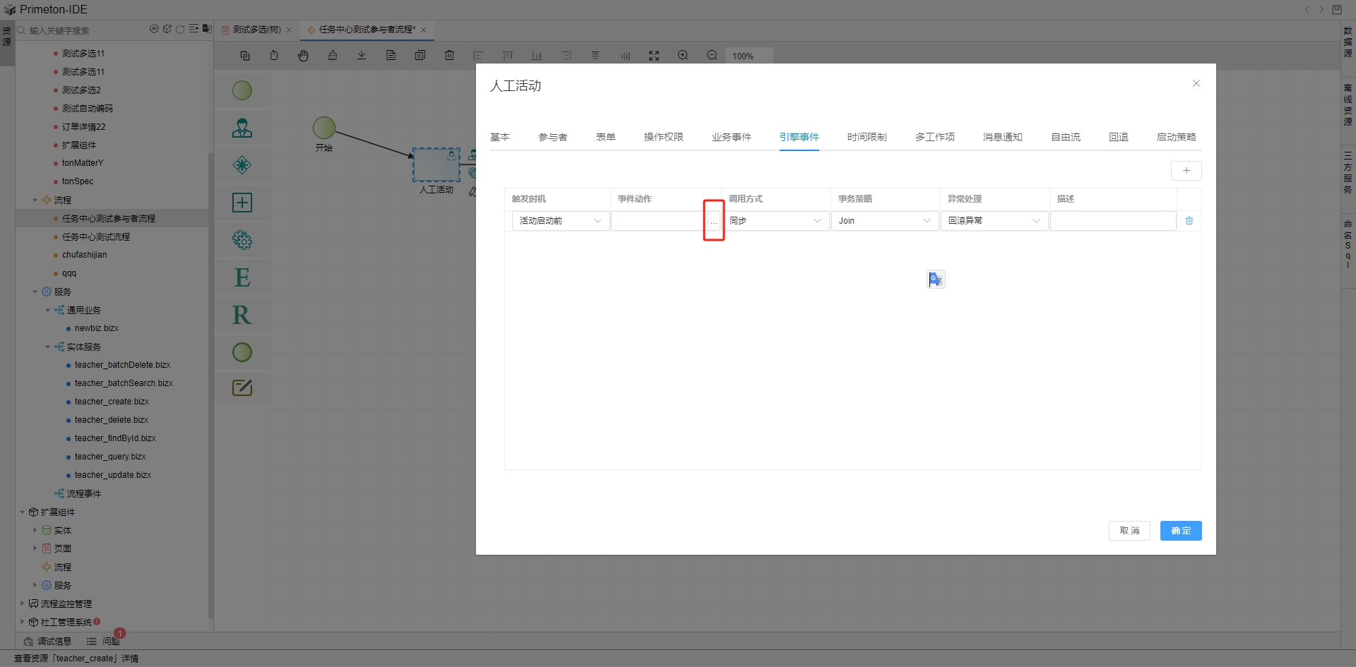 以人工活动配置为例,在引擎事件tab页即可设置触发事件。