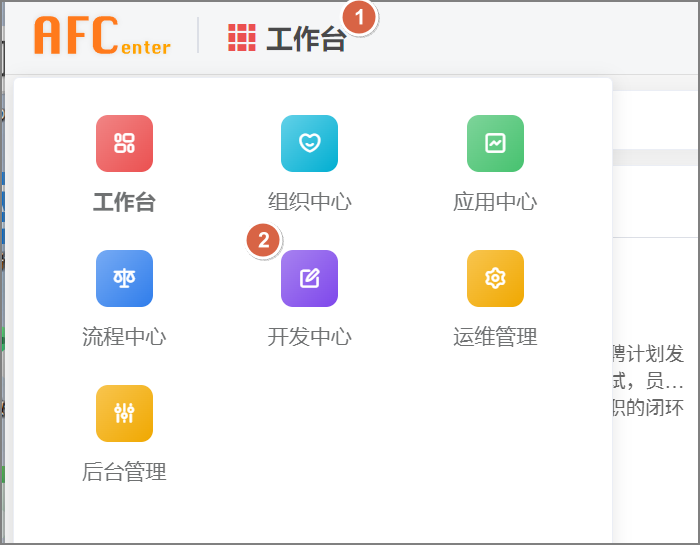 登录EOS8后,在页面右上角单击工作台,然后单击开发中心。