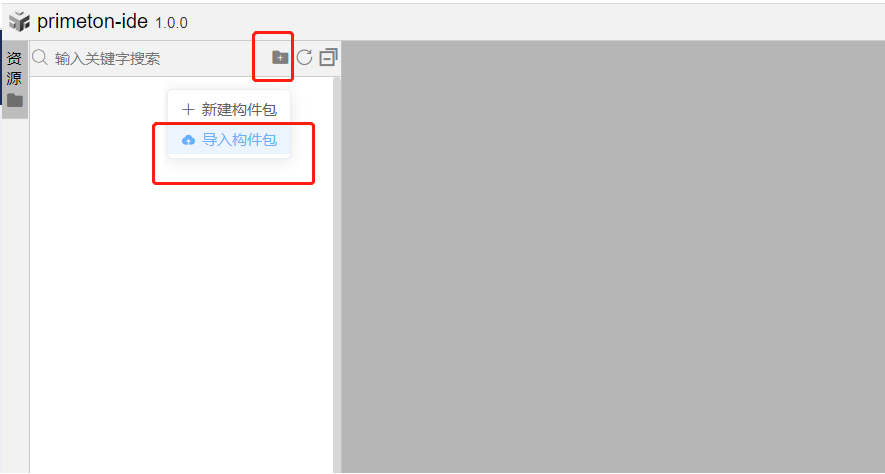 在生产环境中,建立同名应用EOS8-DEMO-APP以及报表数据源,打开应用的在线开发IDE,在资源视图中点入导出构件包,选择资源包afc_lowcode_project_contribution_EOS8-DEMO-APP.zip。