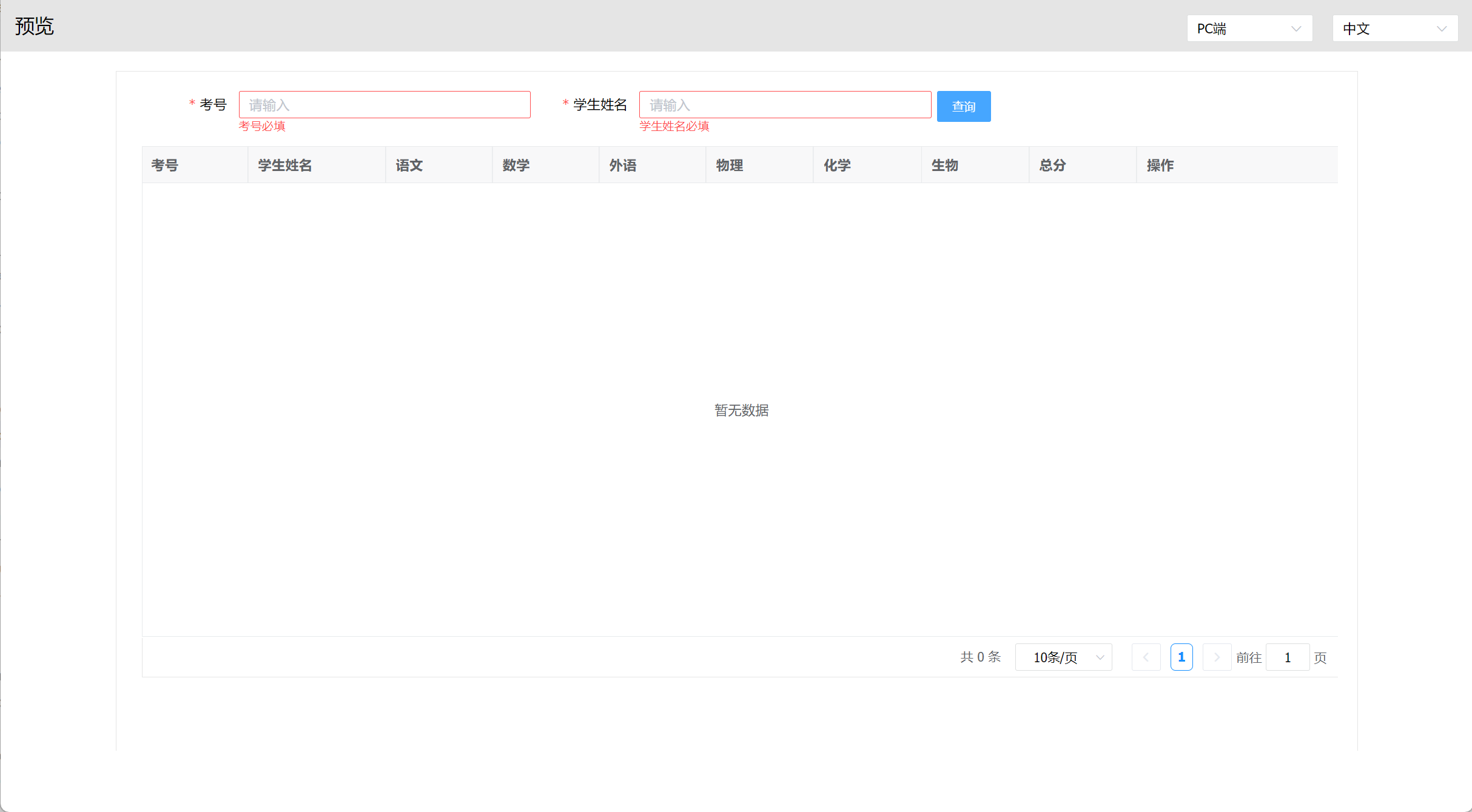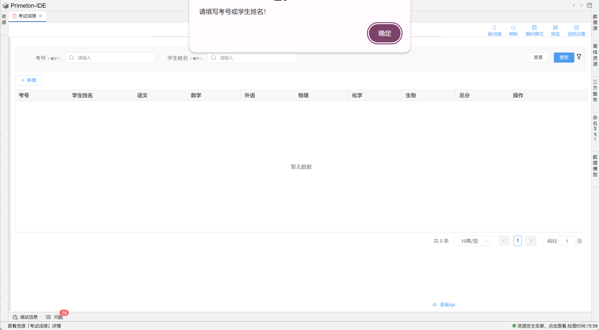 alert("请填写考号或学生姓名!")