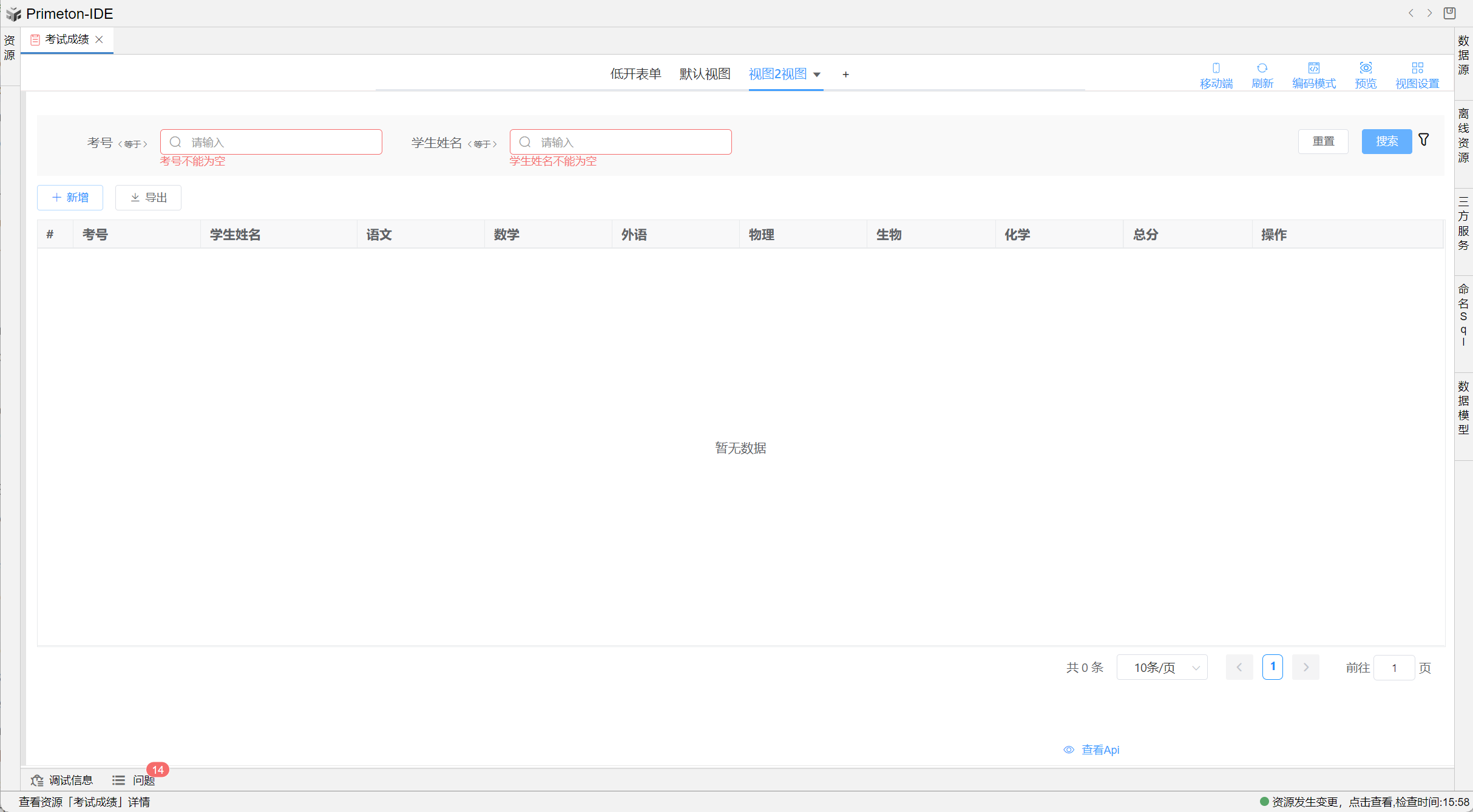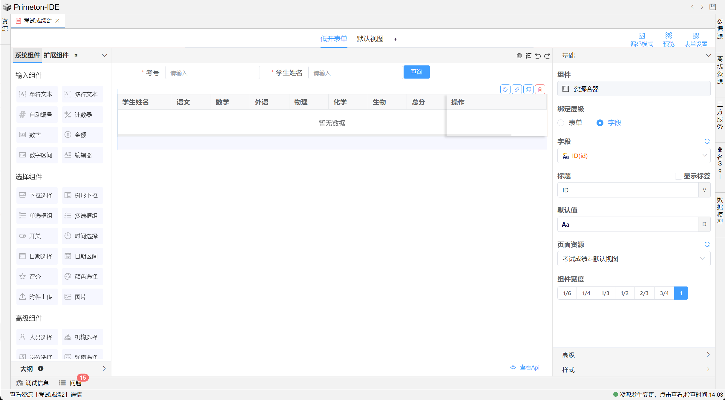 在表单中添加查询条件及按钮,并使用资源容器嵌入视图