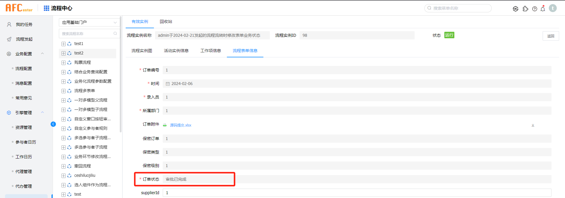 流程发起填写表单状态时,当状态不为空时,流程流转到达活动订单信息审核环节时调用逻辑流修改状态为审核已完成