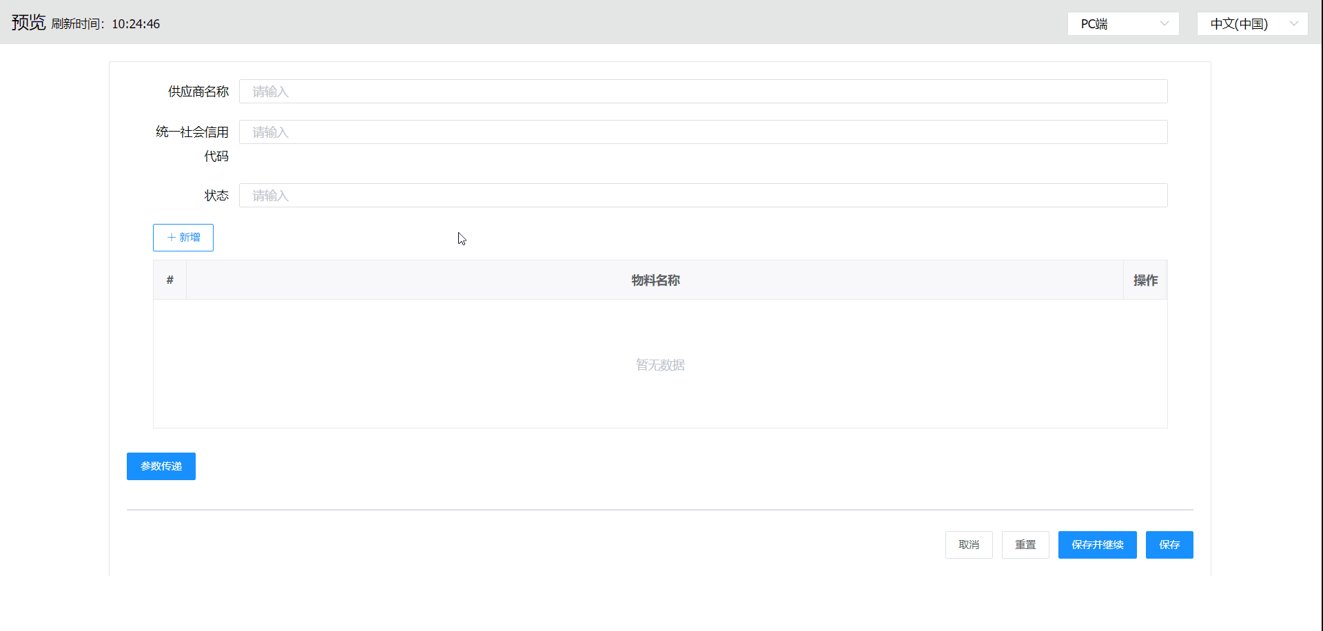 参考物料表单操作