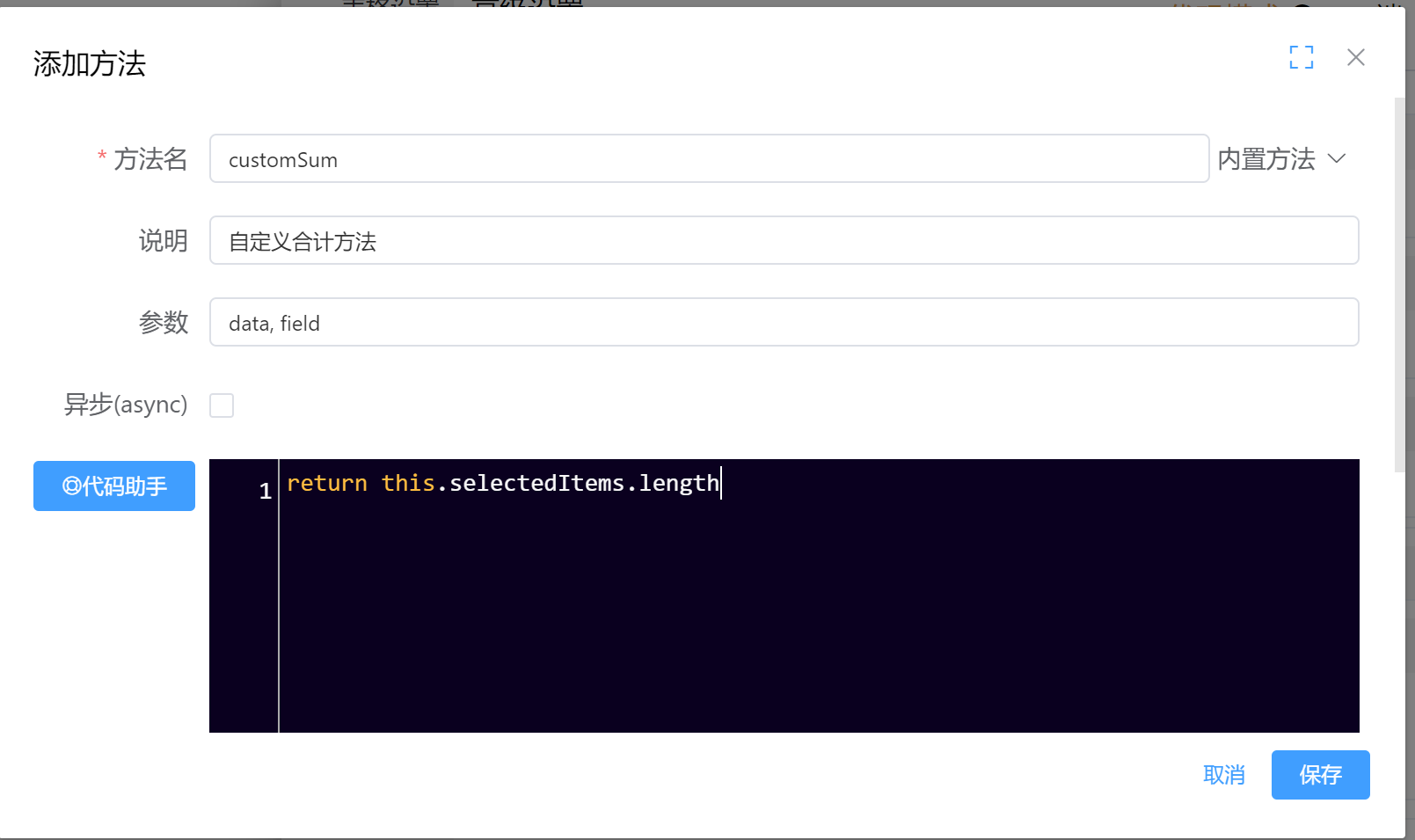 2.在视图中,自定义合计方法,根据选中数据进行合计