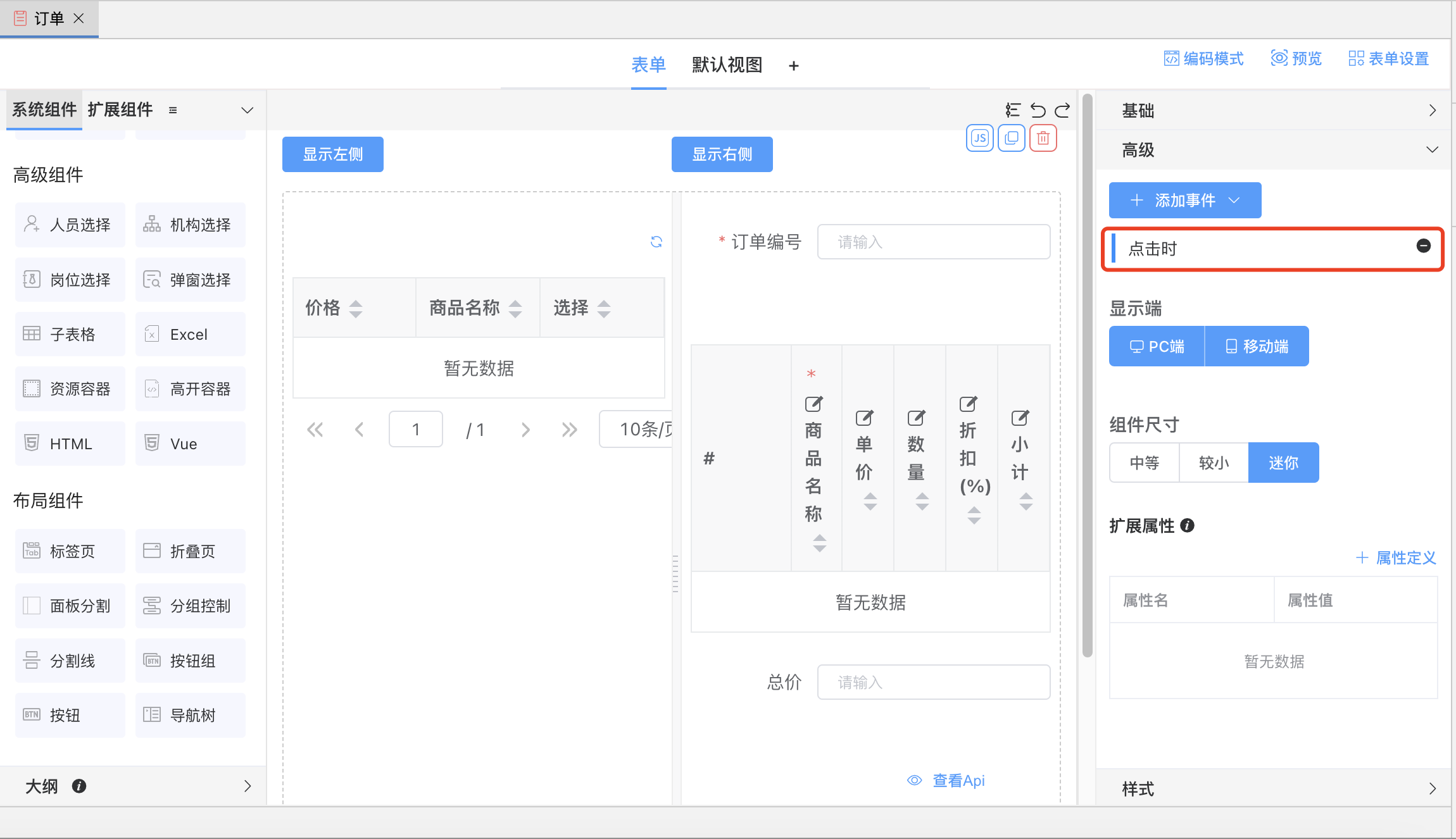 点击建立好的面板分割,在面板分割-高级中添加扩展属性,绑定v_show。