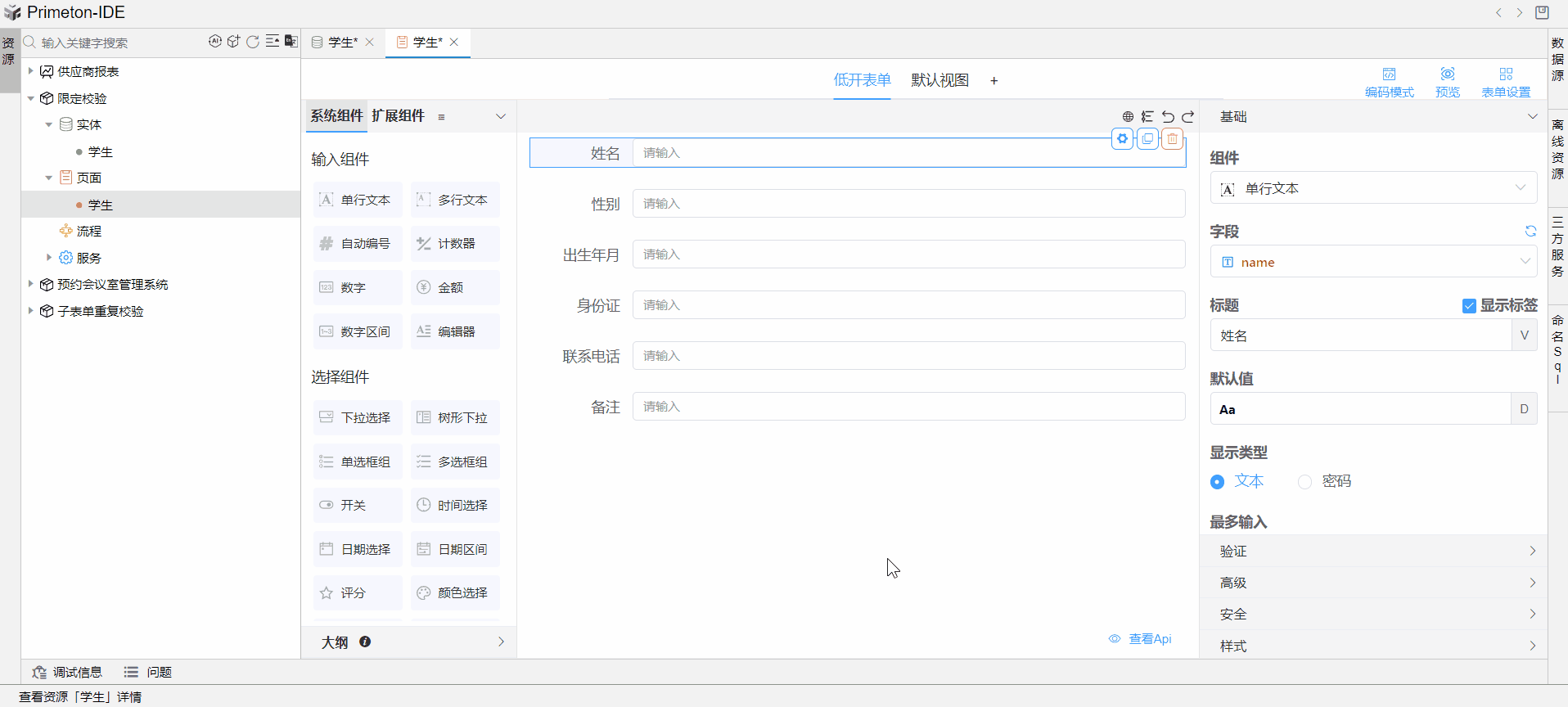 以上述场景,讲解在表单中如何对单行文本组件的输入内容做限定格式的校验。